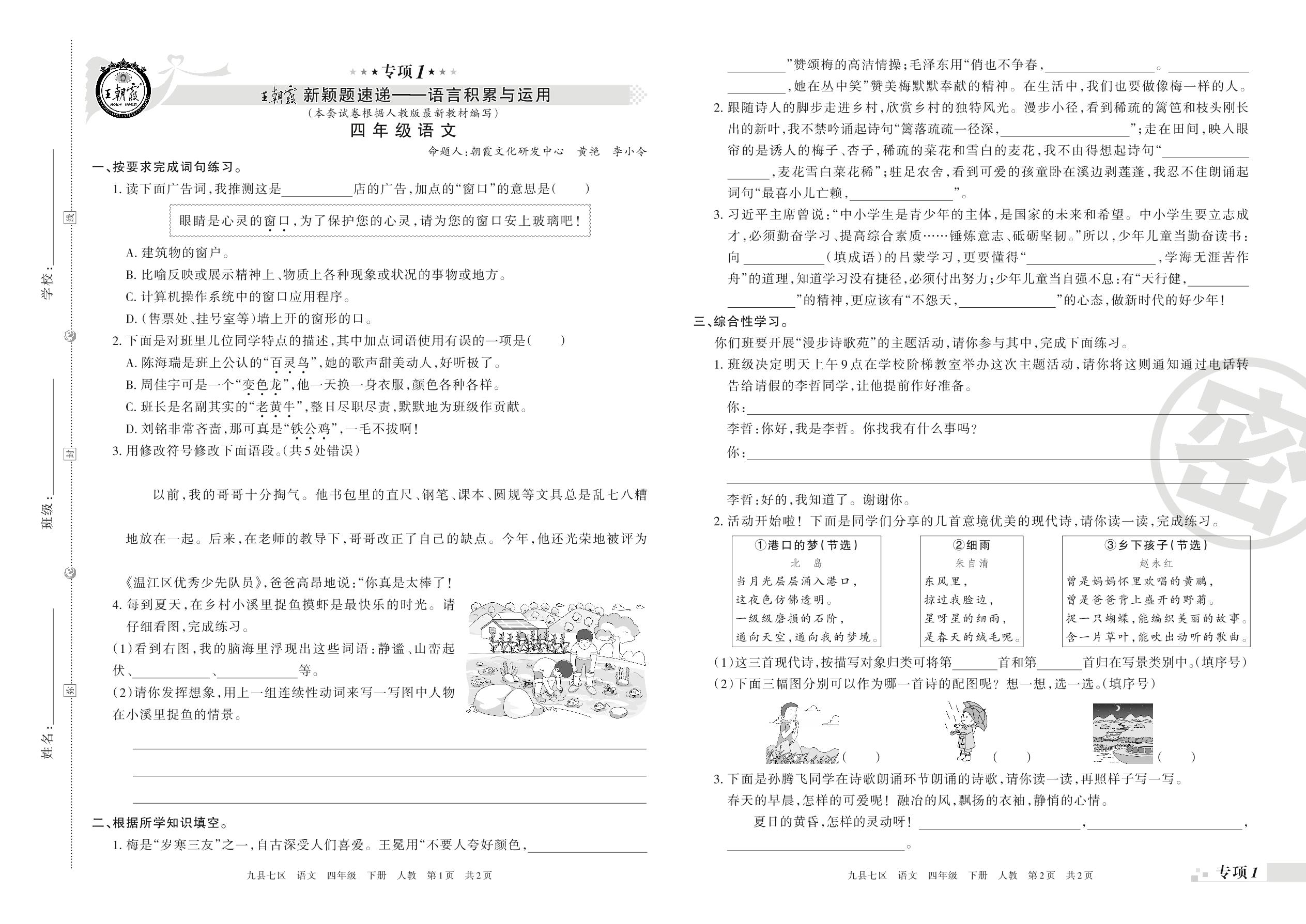 王朝霞期末专项卷——语言积累与运用、非连续性文本阅读四年级下册语文(人教版)_R210801182117【0】