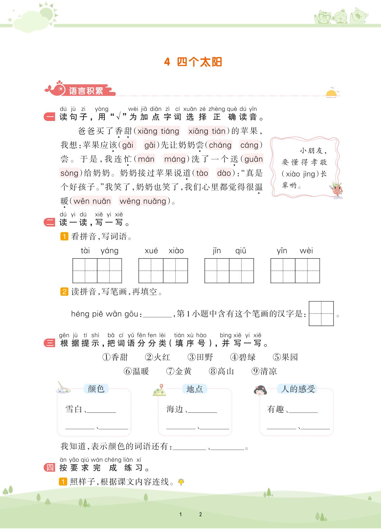 2021下册一年级语文人教版 第二单元 课文——4 四个太阳