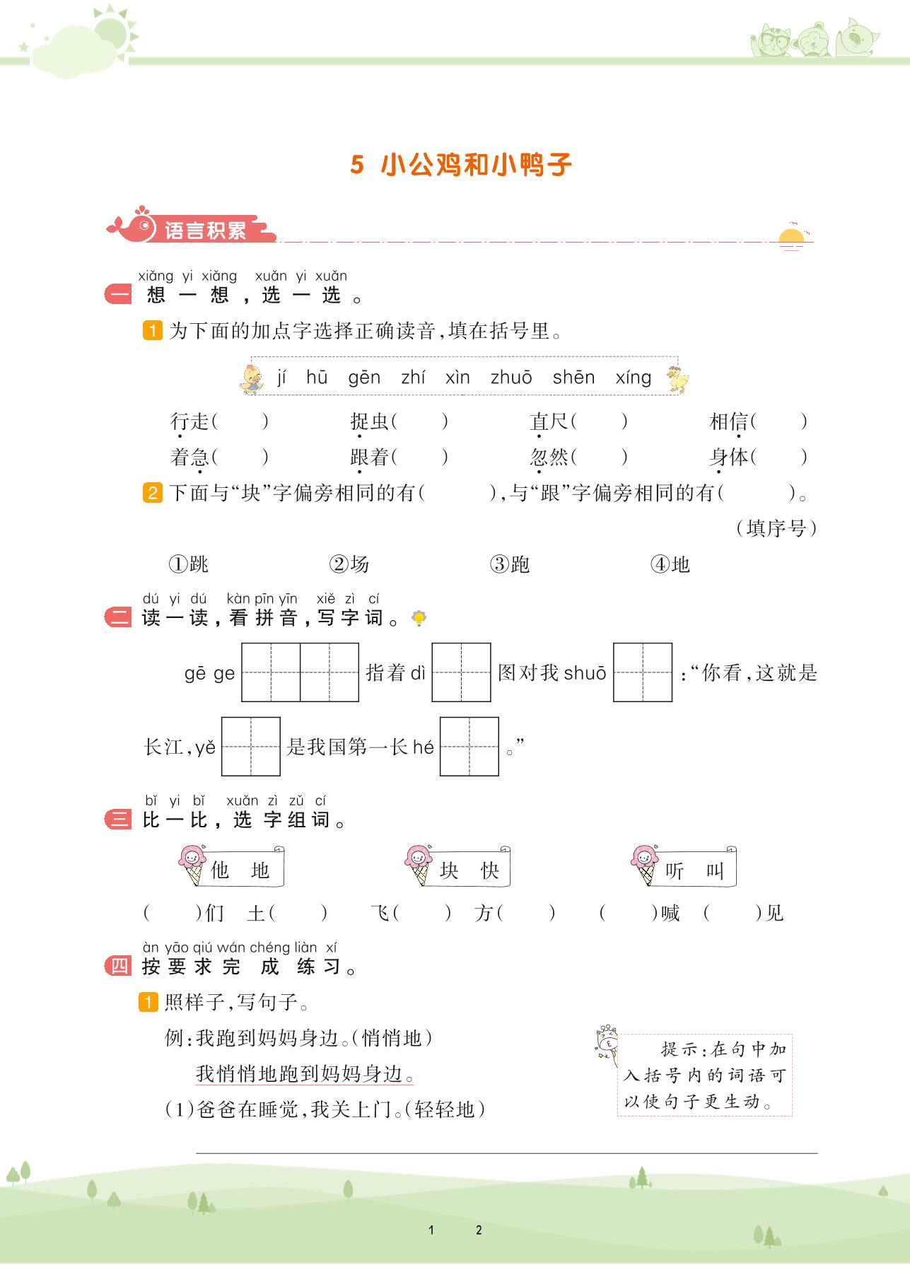 2021下册一年级语文人教版 第三单元 课文——5 小公鸡和小鸭子