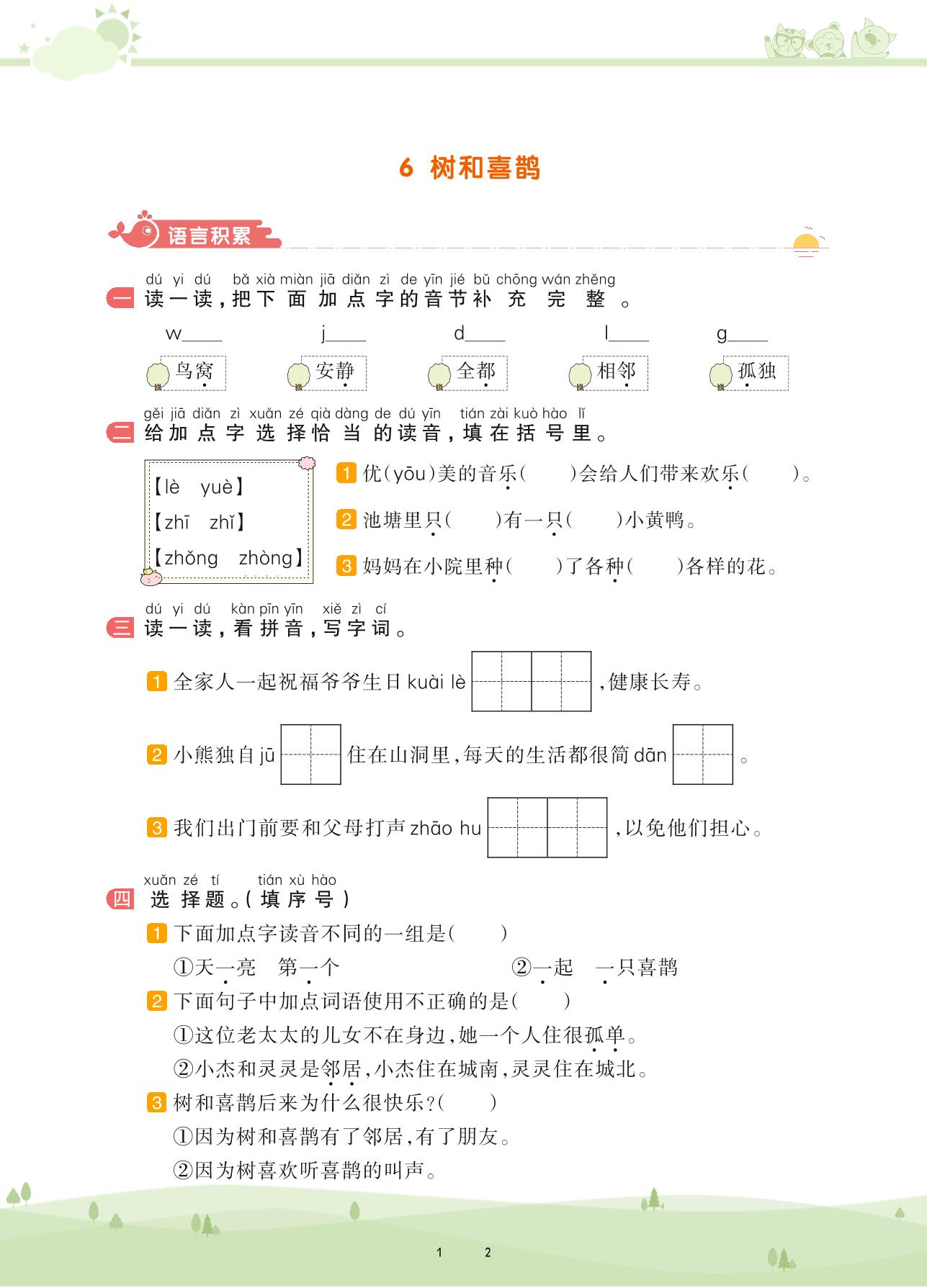 2021下册一年级语文人教版 第三单元 课文——6 树和喜鹊