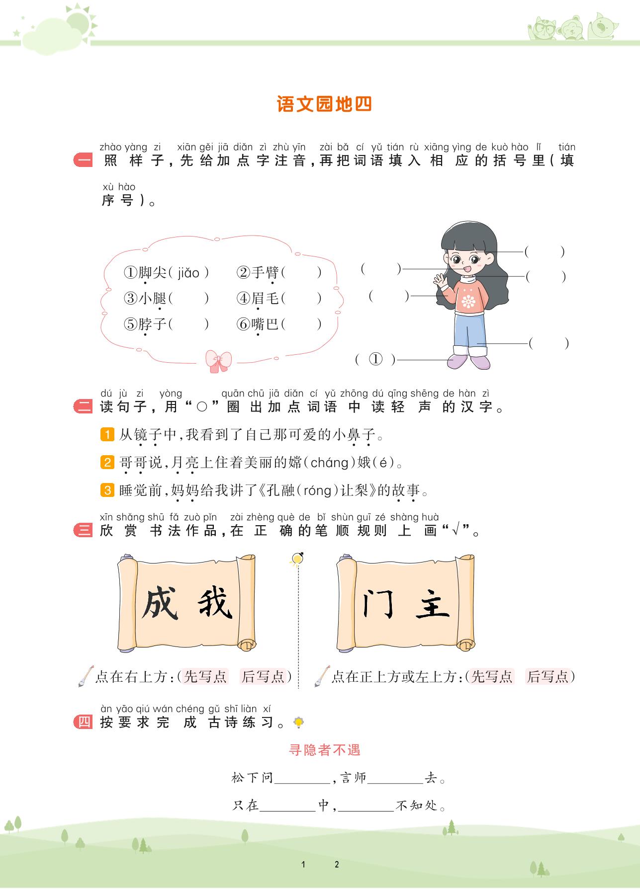 2021下册一年级语文人教版 第四单元 课文——语文园地四