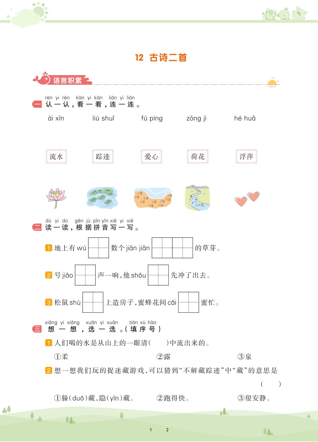 2021下册一年级语文人教版 第六单元 课文——12 古诗二首