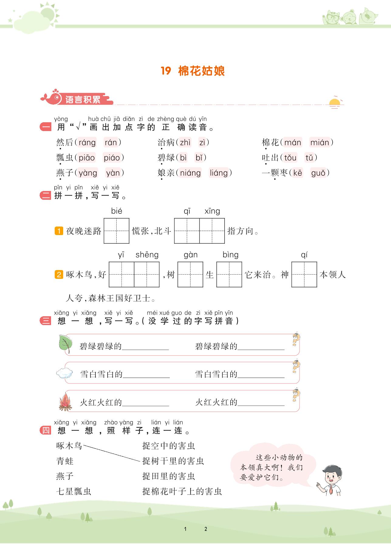 2021下册一年级语文人教版 第八单元 课文——19 棉花姑娘