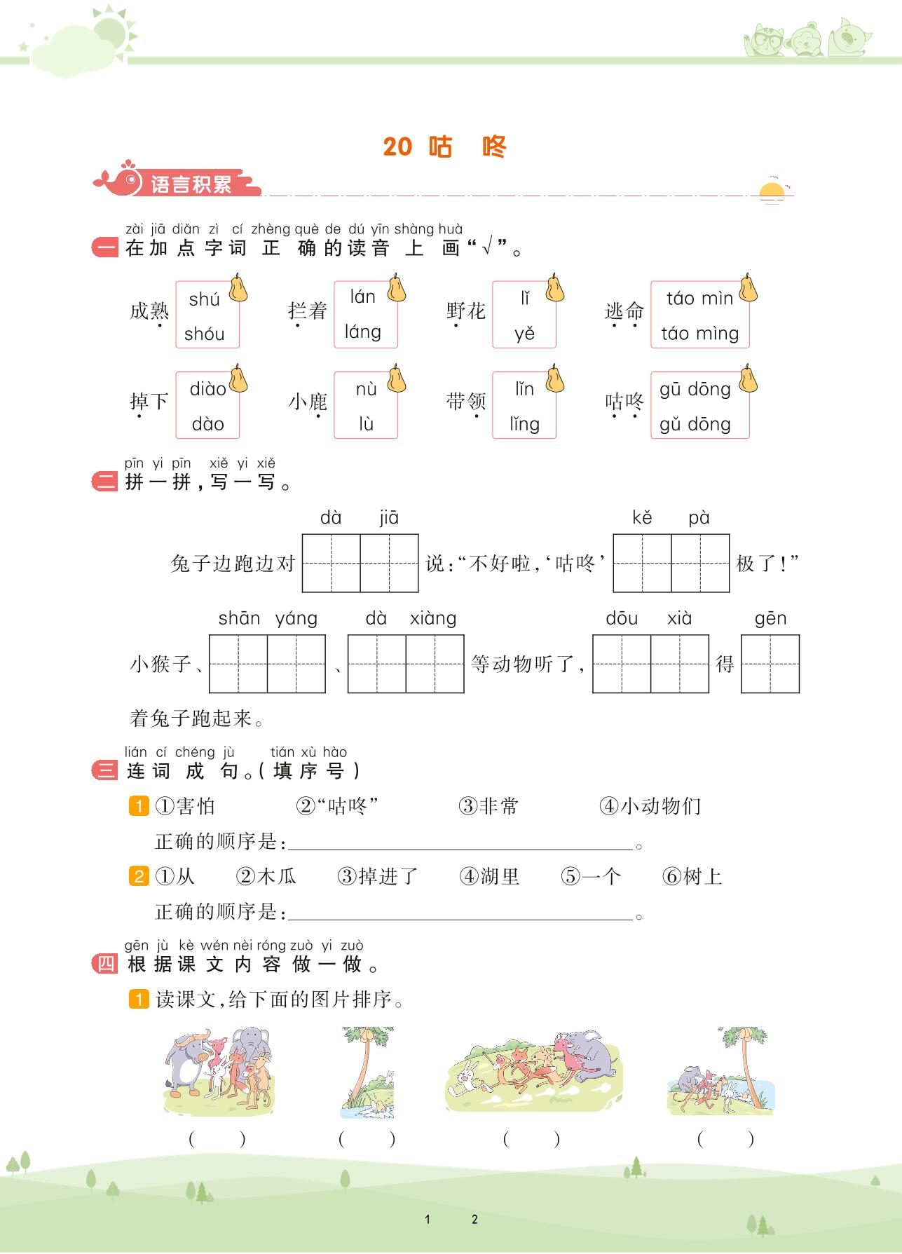 2021下册一年级语文人教版 第八单元 课文——20 咕咚
