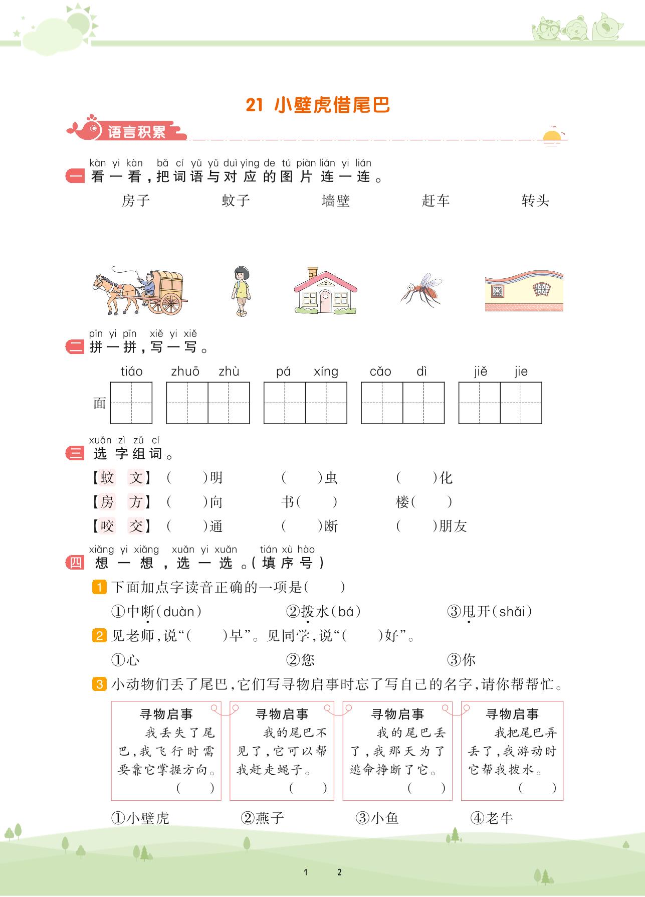 2021下册一年级语文人教版 第八单元 课文——21 小壁虎借尾巴
