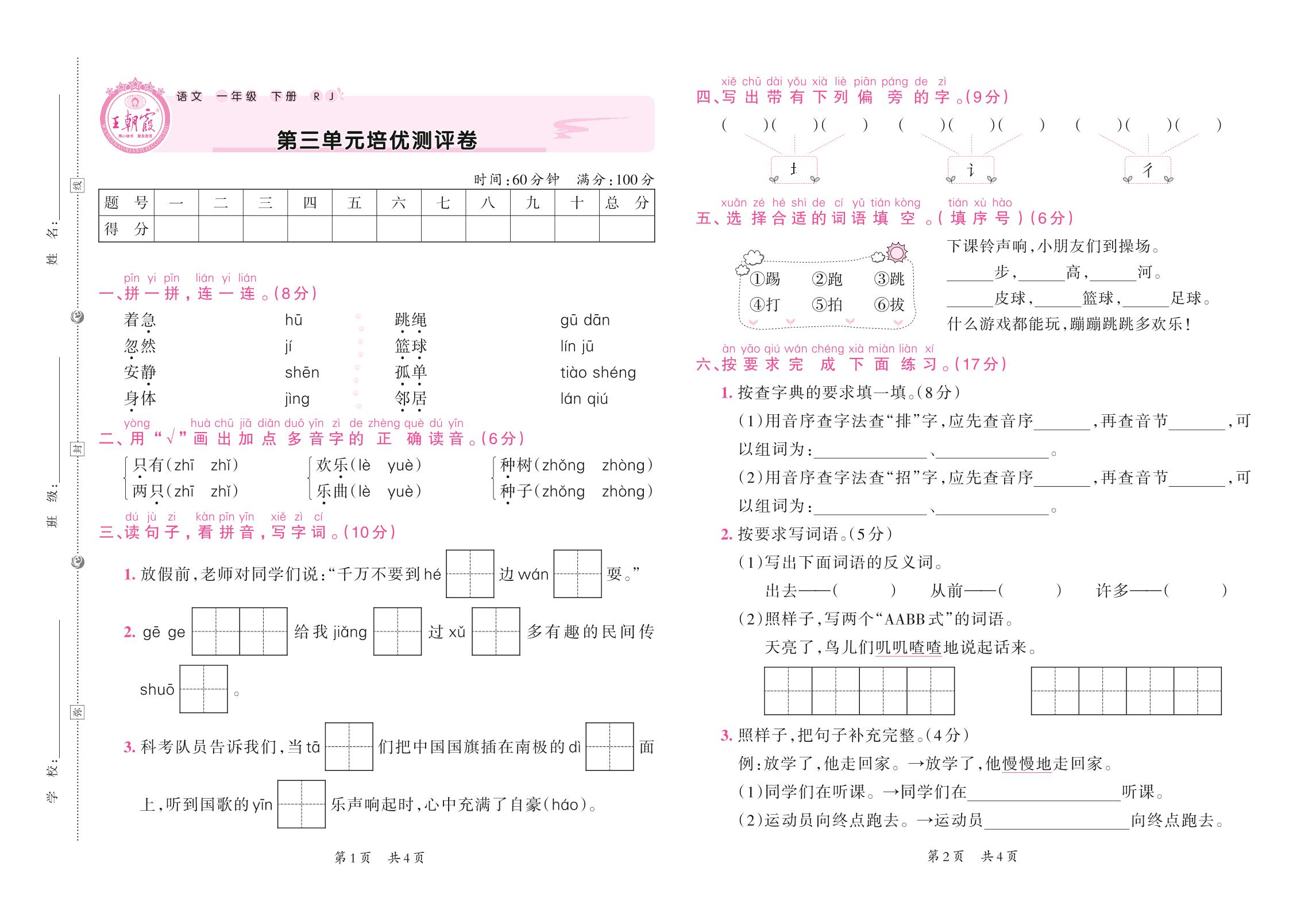 一年级语文人教版下册单元卷
