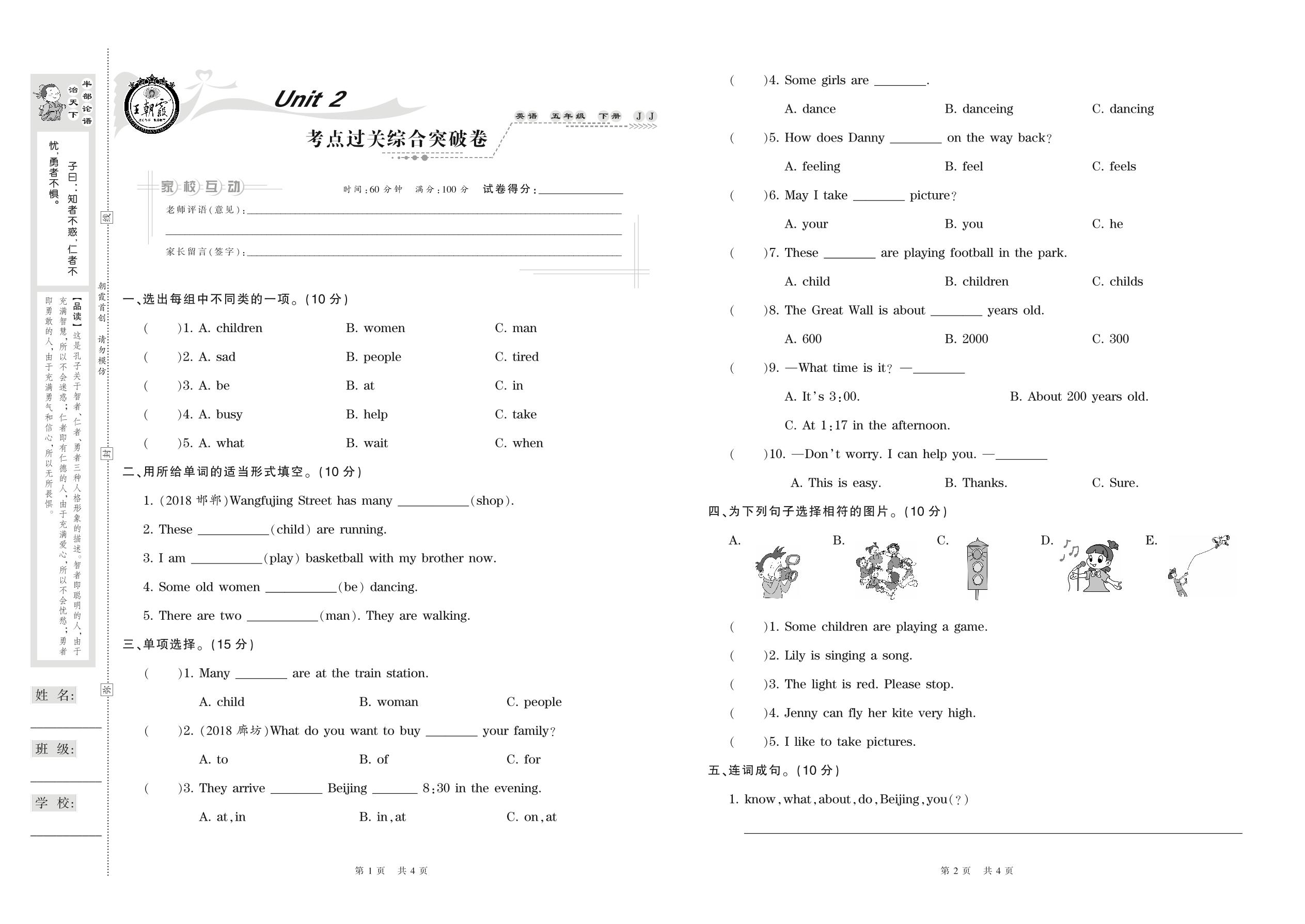 五年级英语冀教版下册单元卷