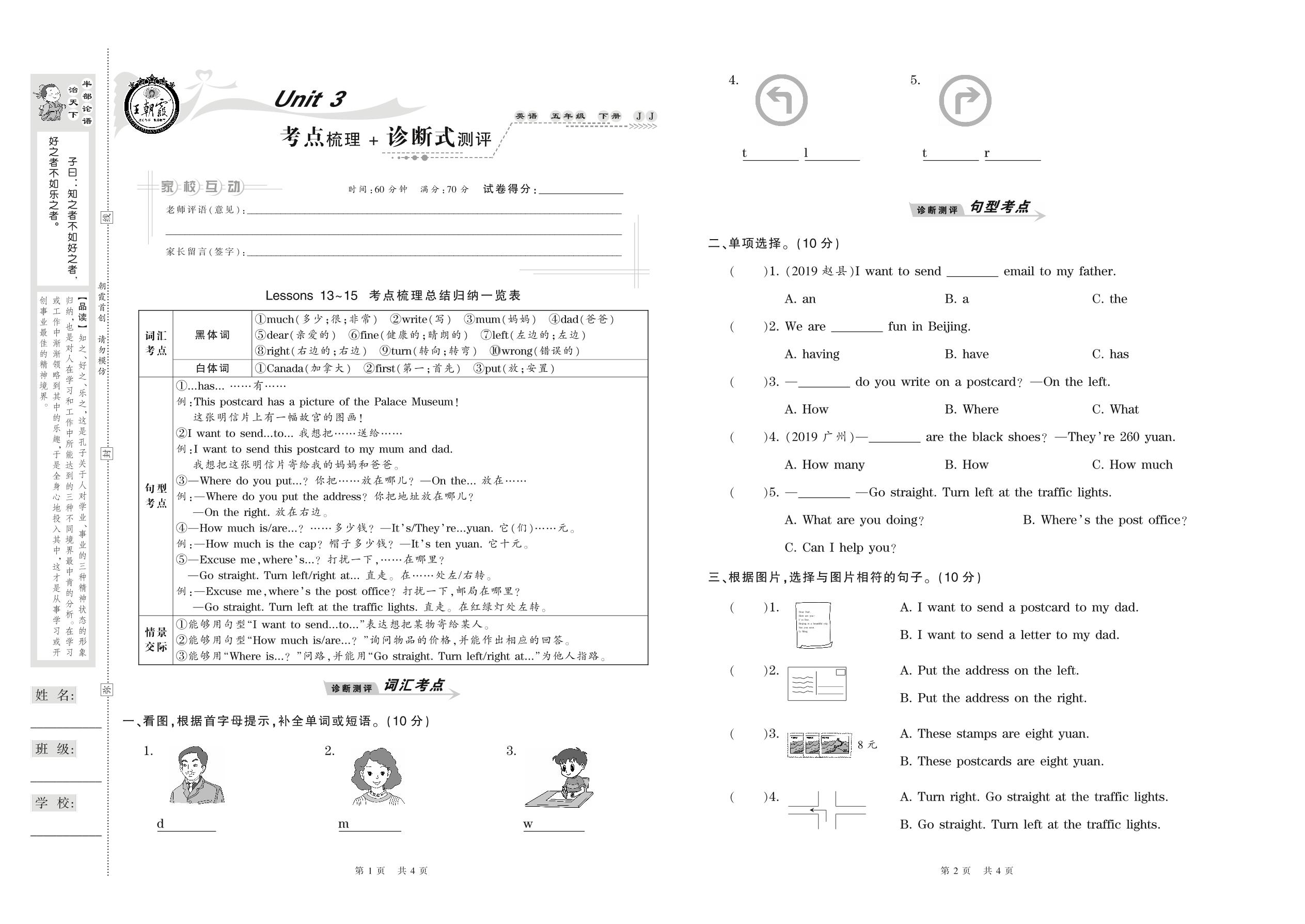 2021下册五年级英语冀教版 Unit 3 考点梳理+诊断式测评 Lessons 13-15