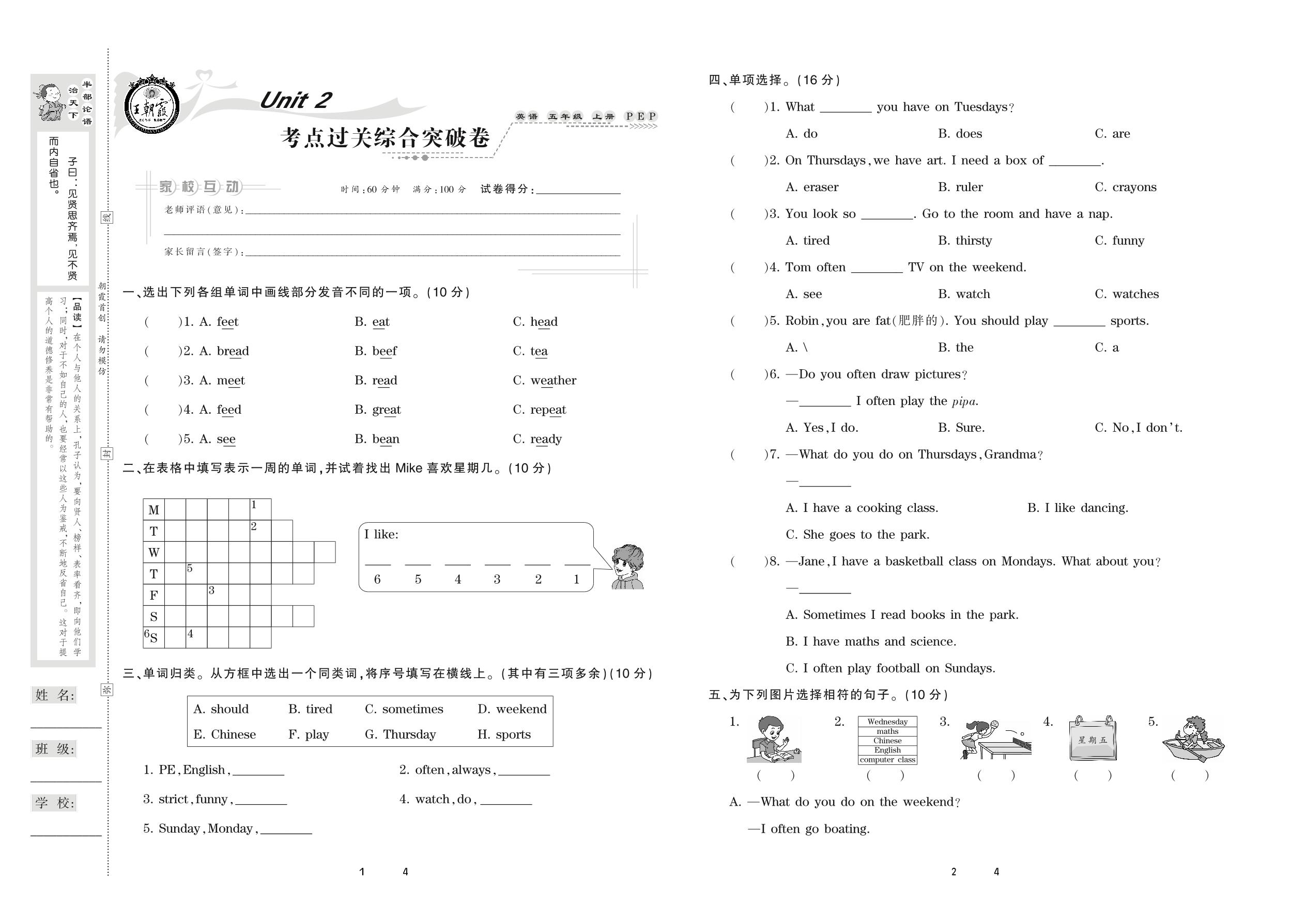 2020上册五年级英语PEP版 Unit 2 考点过关综合突破卷