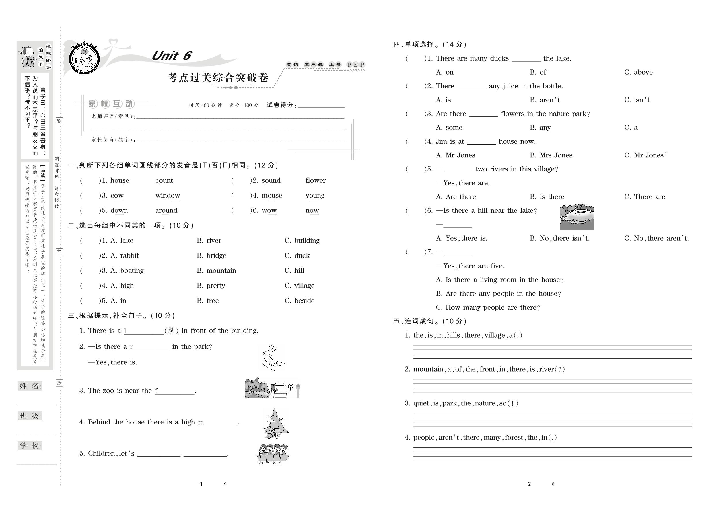 2020上册五年级英语PEP版 Unit 6 考点过关综合突破卷