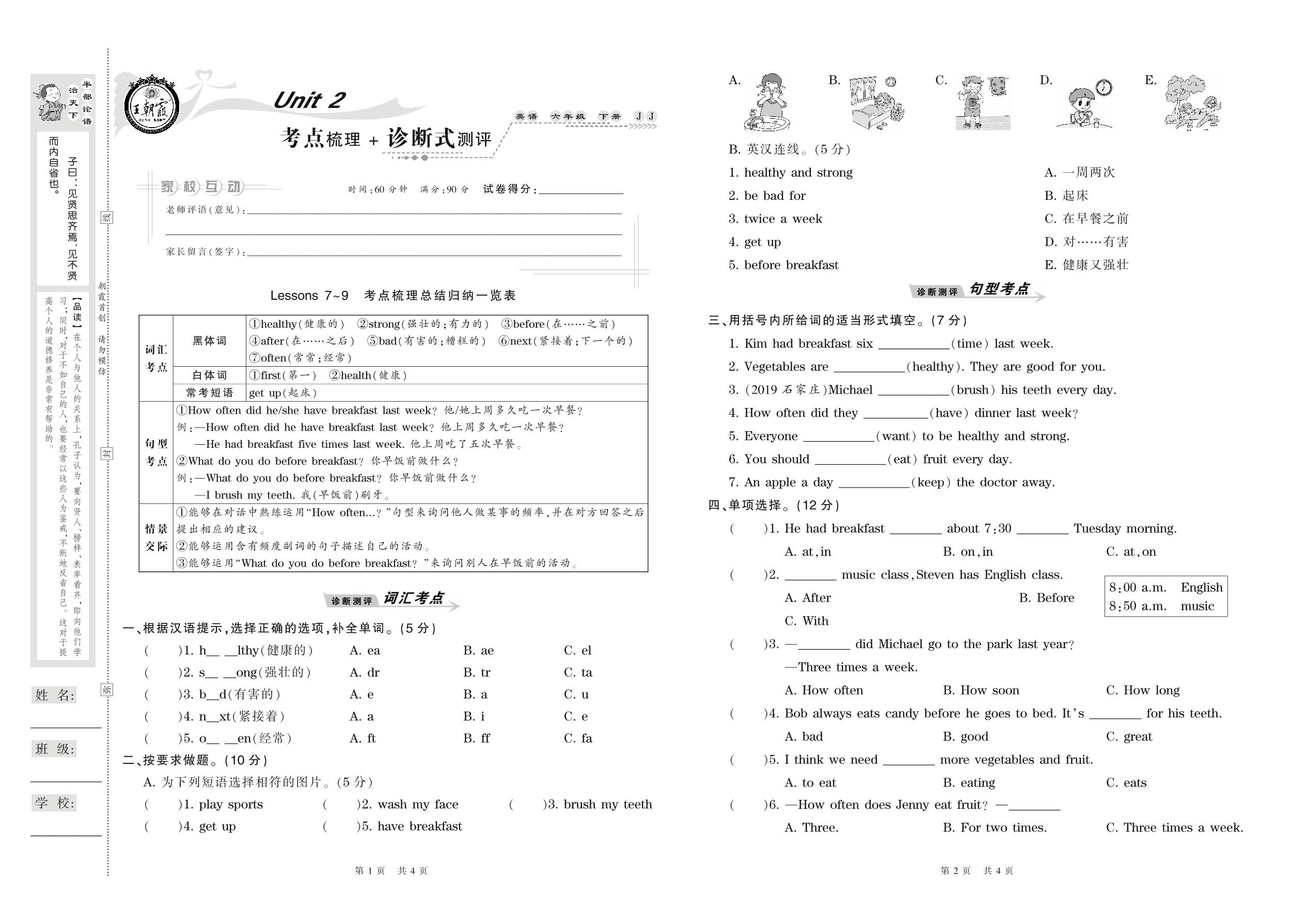 2021下册六年级英语冀教版 Unit 2 考点梳理+诊断式测评 Lessons 7-9