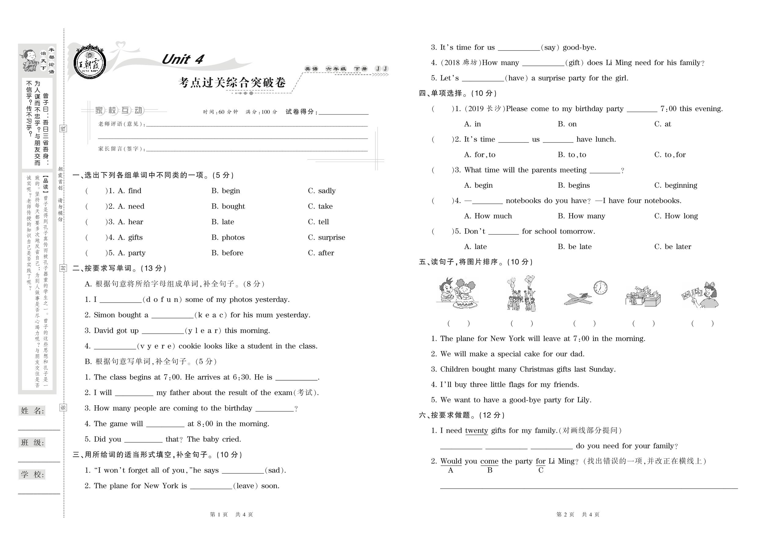 2021下册六年级英语冀教版 Unit 4 考点过关综合突破卷