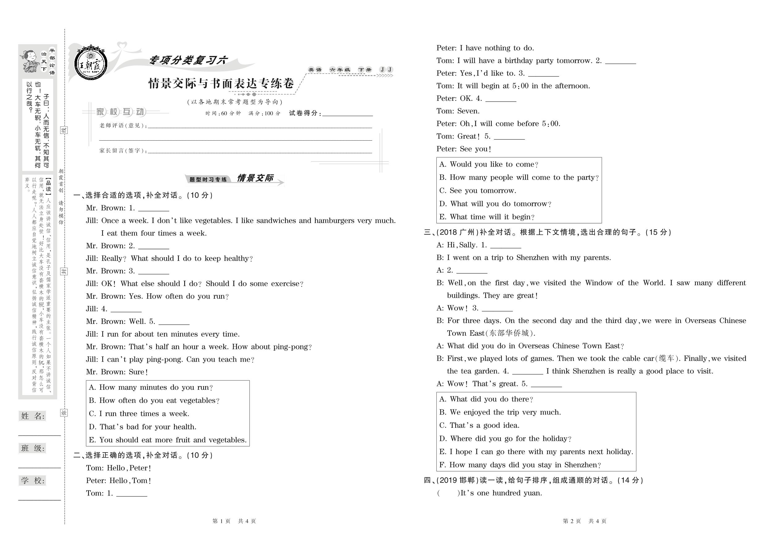 2021下册六年级英语冀教版 情景交际与书面表达专练卷