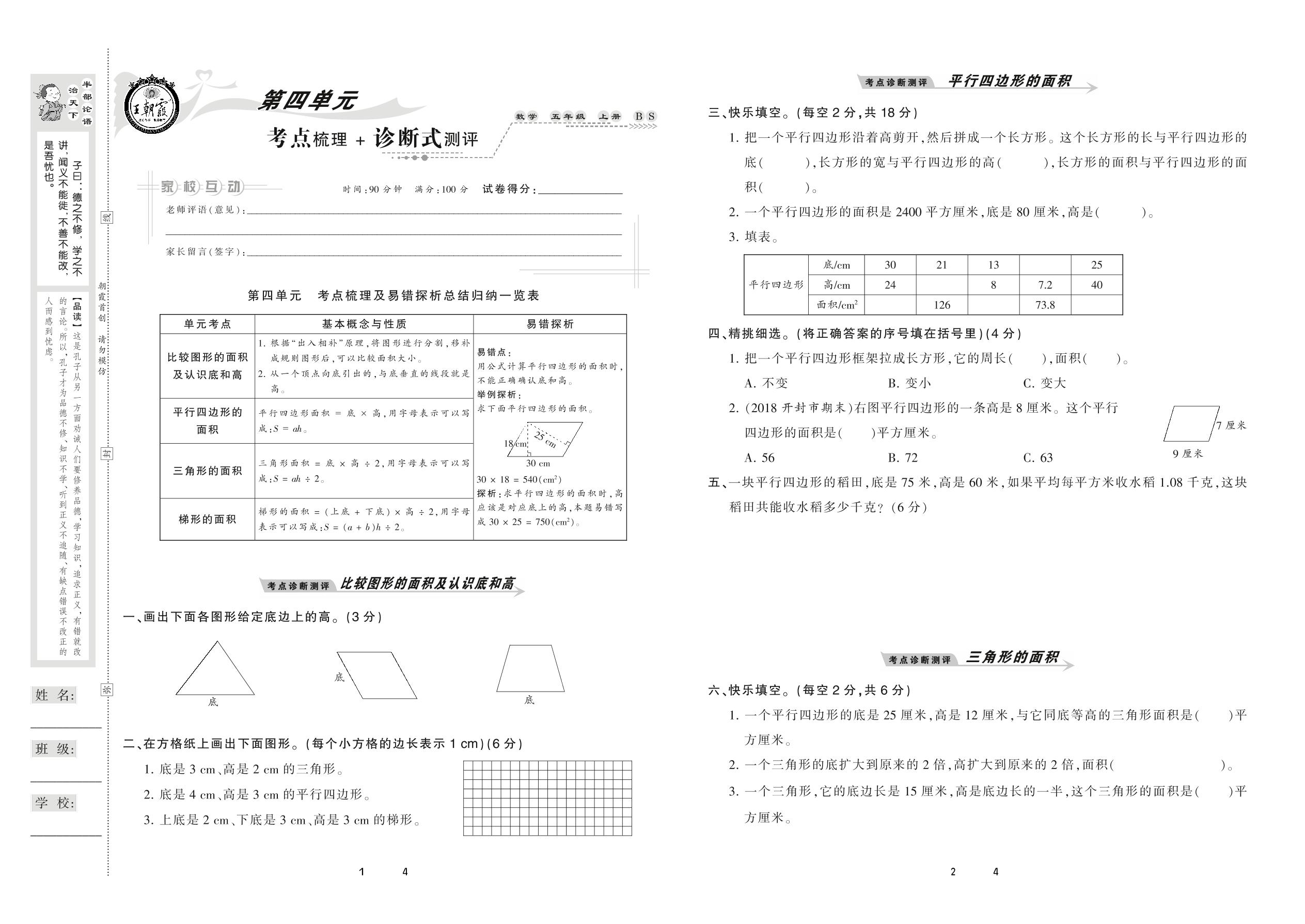 2020上册五年级数学北师版 第四单元 考点梳理+诊断式测评