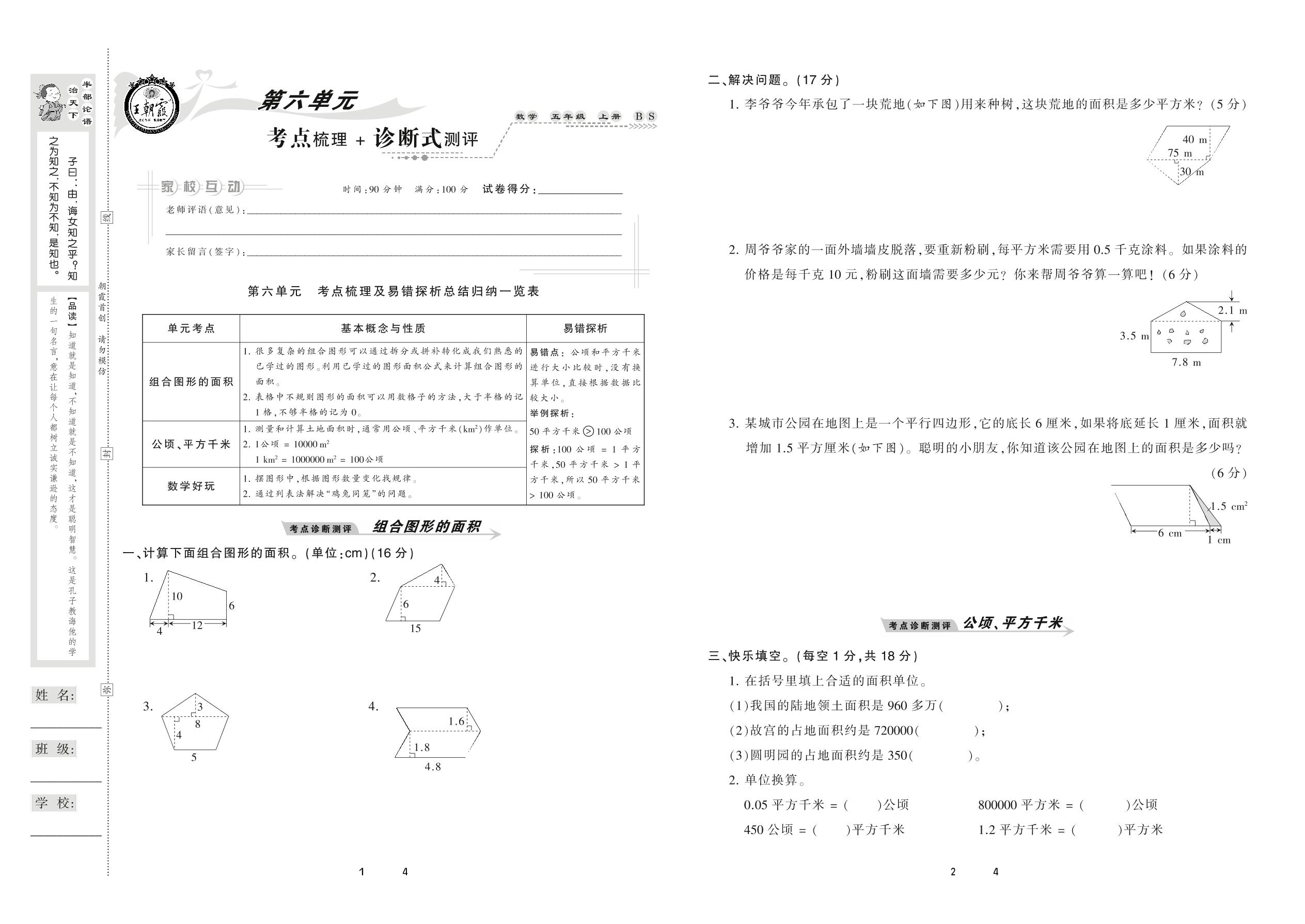 2020上册五年级数学北师版 第六单元 考点梳理+诊断式测评