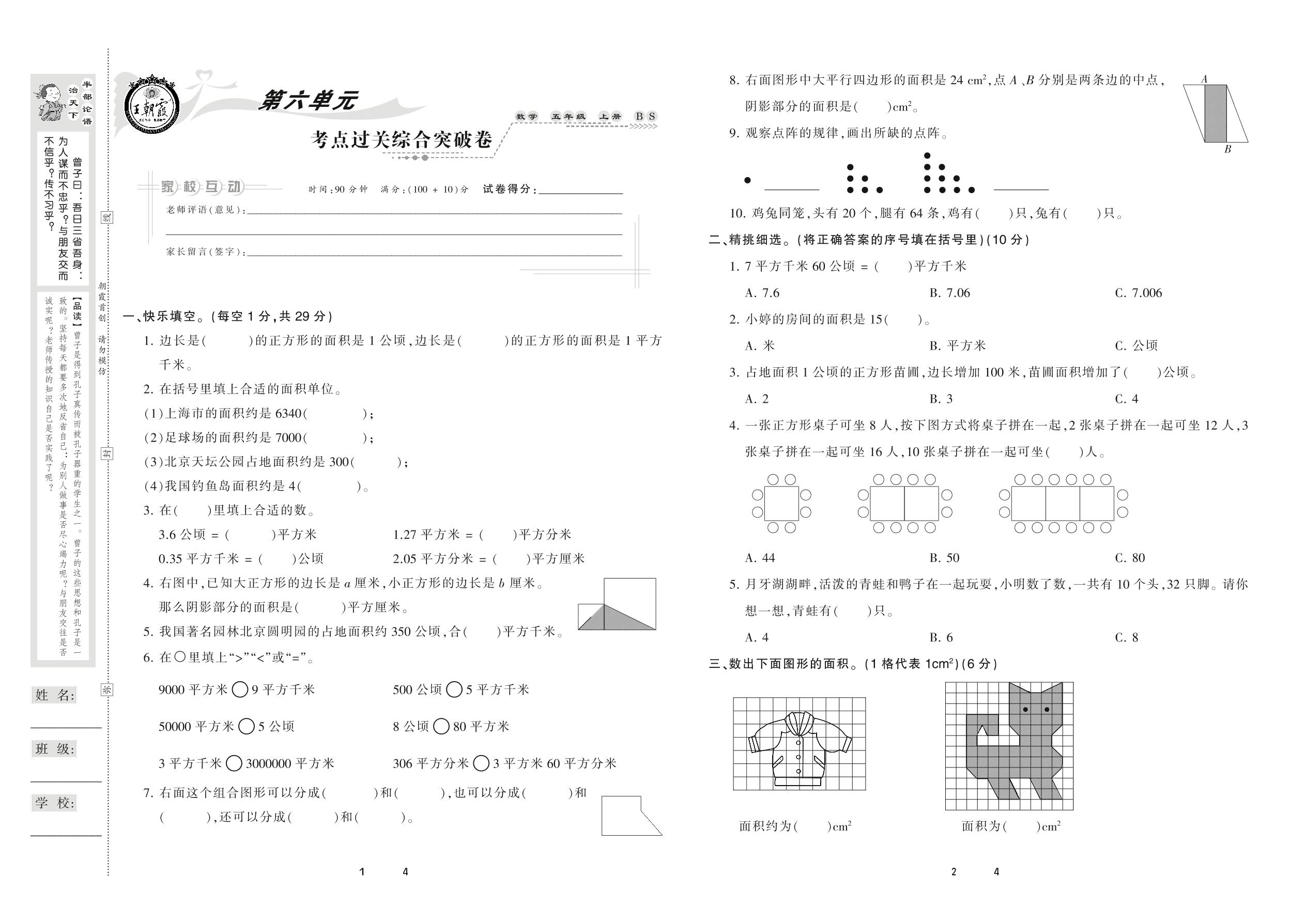 2020上册五年级数学北师版 第六单元 考点过关综合突破卷