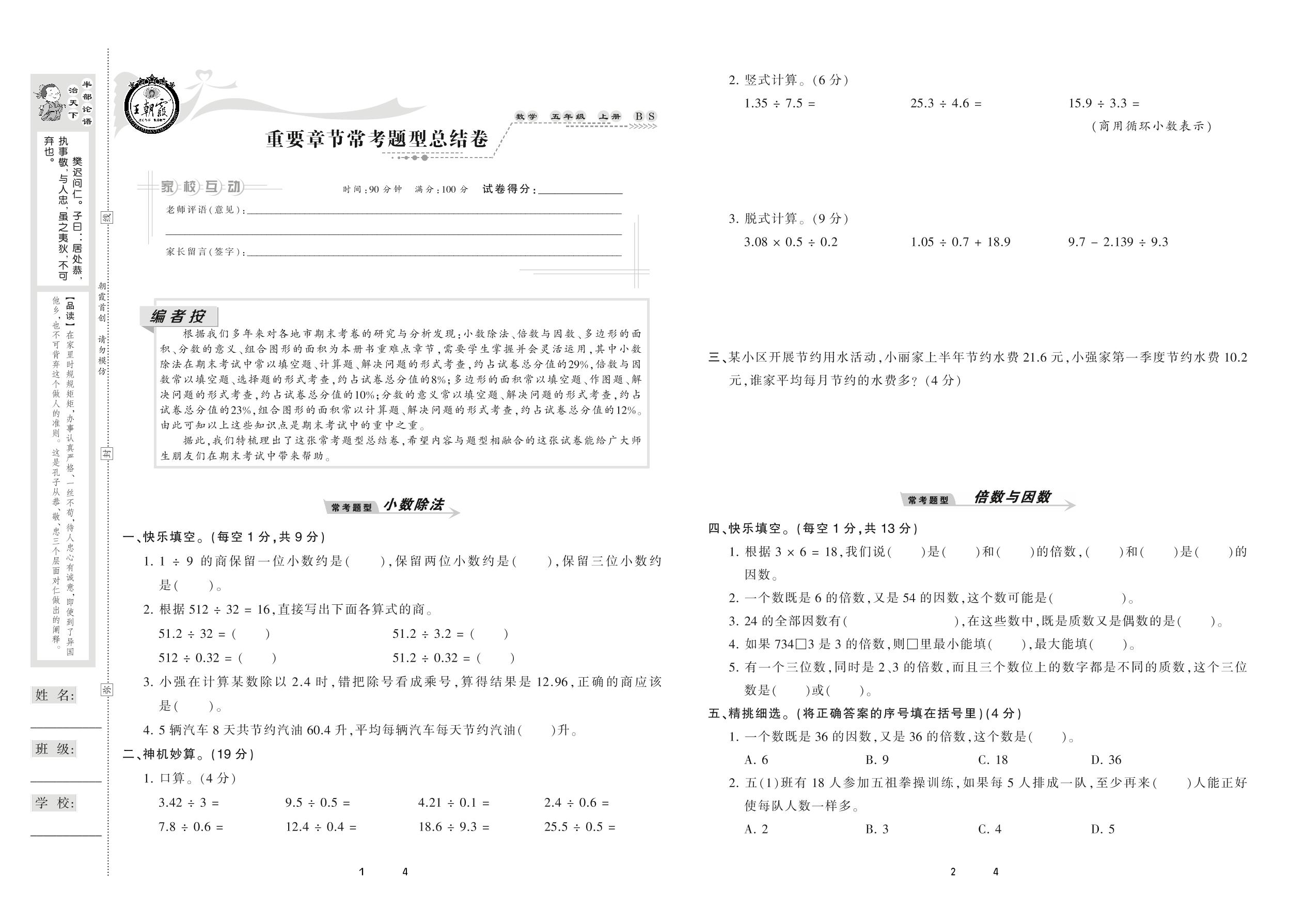 2020上册五年级数学北师版 重要章节常考题型总结卷