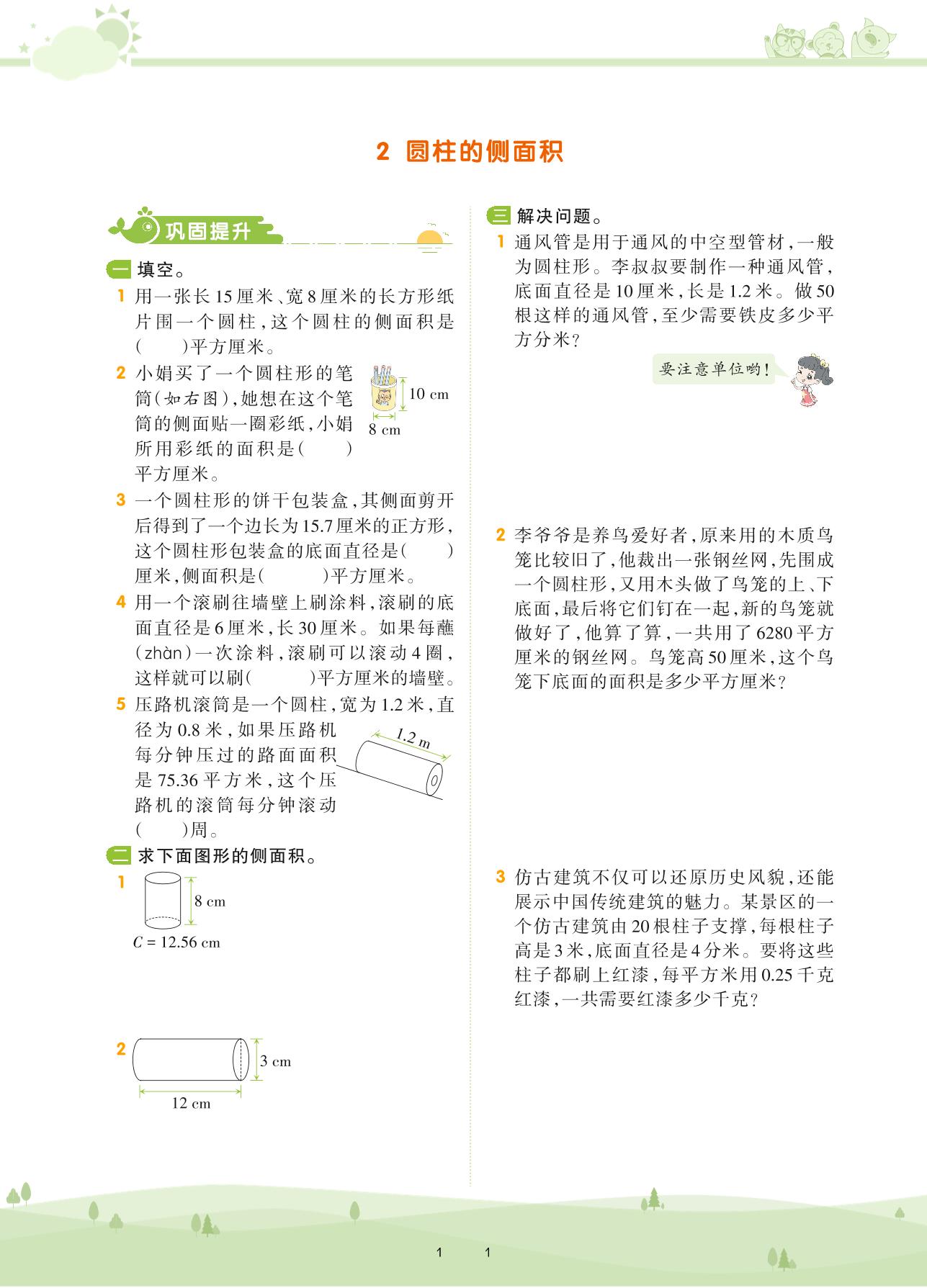 2021下册六年级数学苏教版 第二单元 圆柱和圆锥——2 圆柱的侧面积