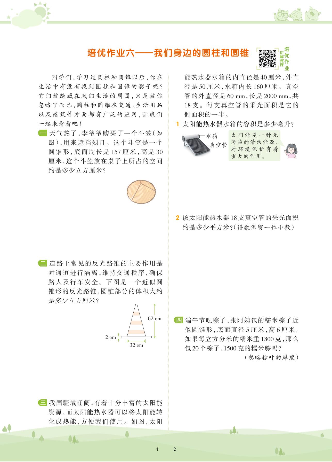 2021下册六年级数学苏教版 第二单元 圆柱和圆锥——培优作业六 我们身边的圆柱和圆锥