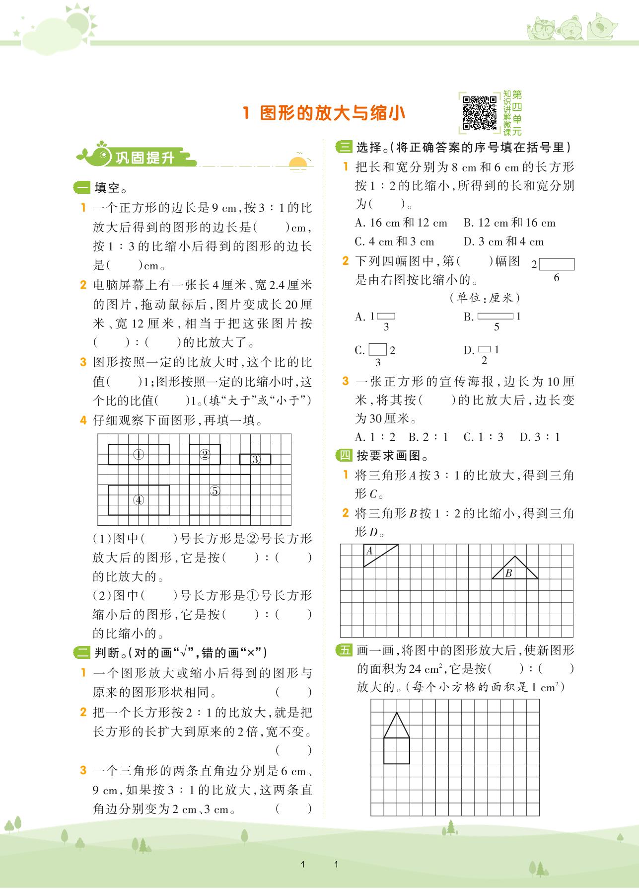2021下册六年级数学苏教版 第四单元 比例——1 图形的放大与缩小