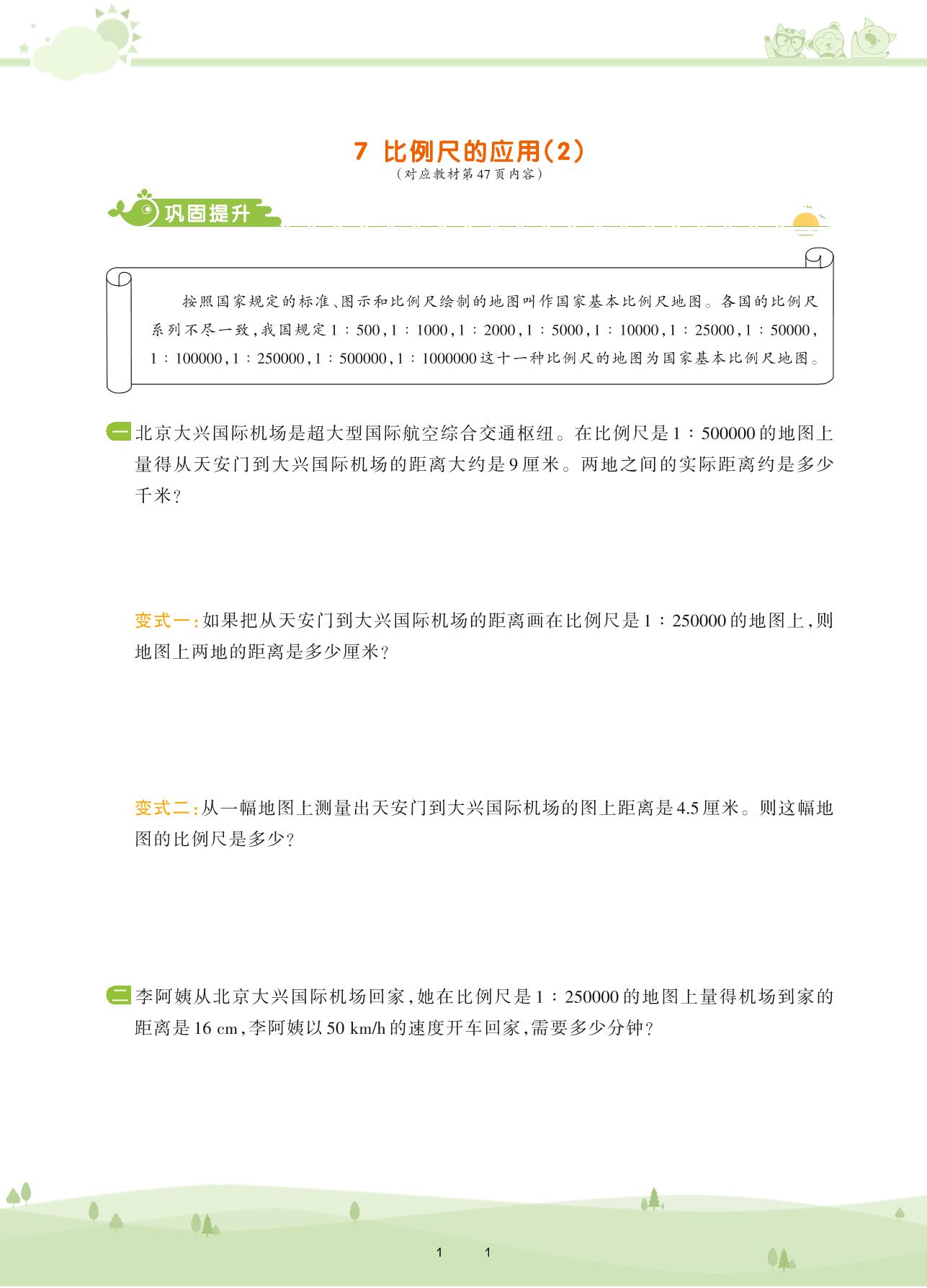 2021下册六年级数学苏教版 第四单元 比例——7 比例尺的应用(2)