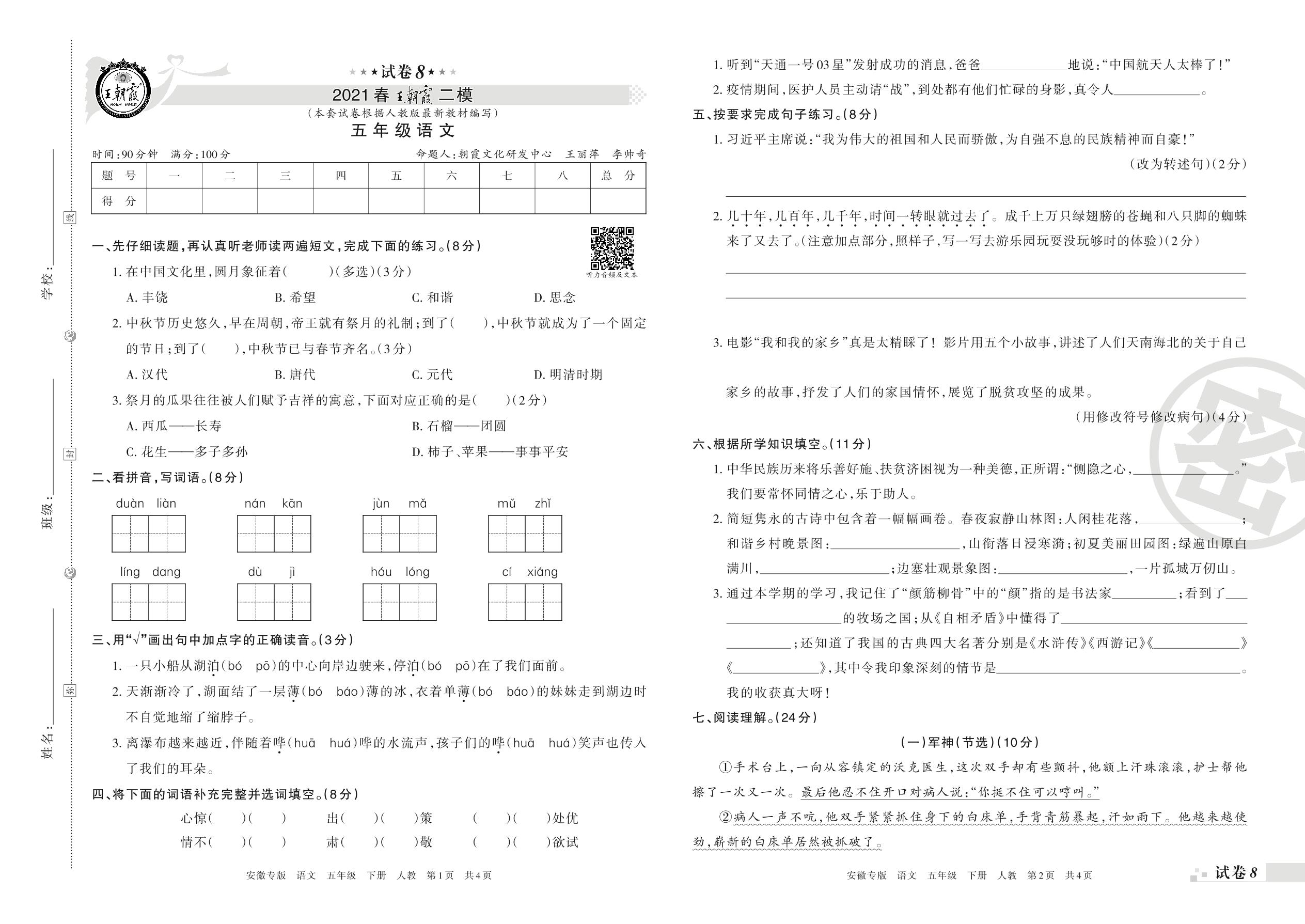 王朝霞期末模拟卷五年级下册语文(人教版)_R210801182318【8】