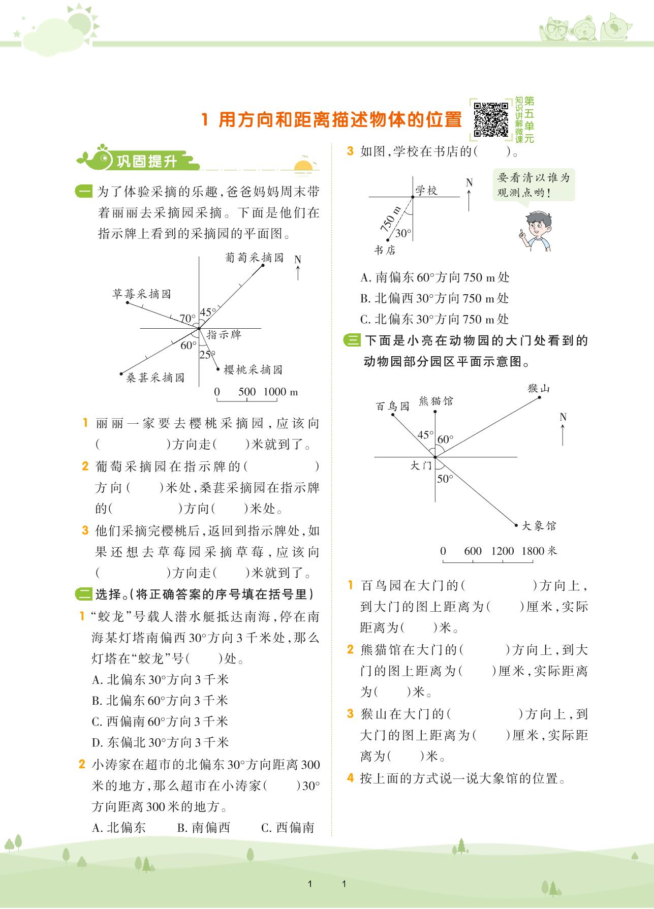 2021下册六年级数学苏教版 第五单元 确定位置——1 用方向和距离描述物体的位置