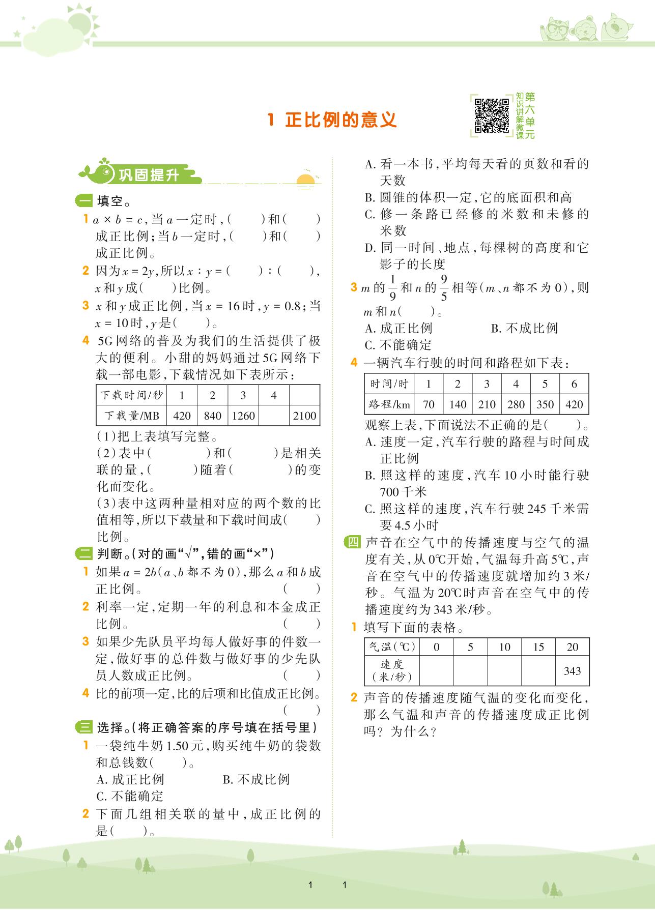 2021下册六年级数学苏教版 第六单元 确定位置——1 正比例的意义
