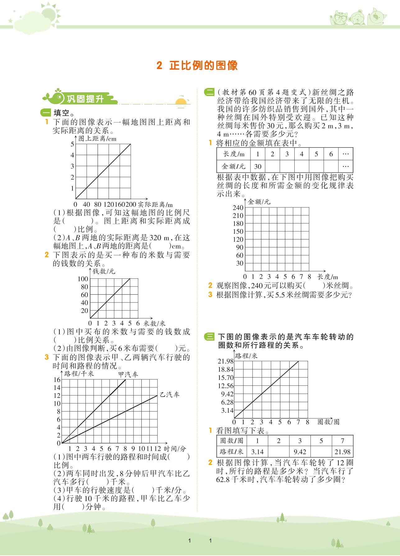 2021下册六年级数学苏教版 第六单元 确定位置——2 正比例的图像
