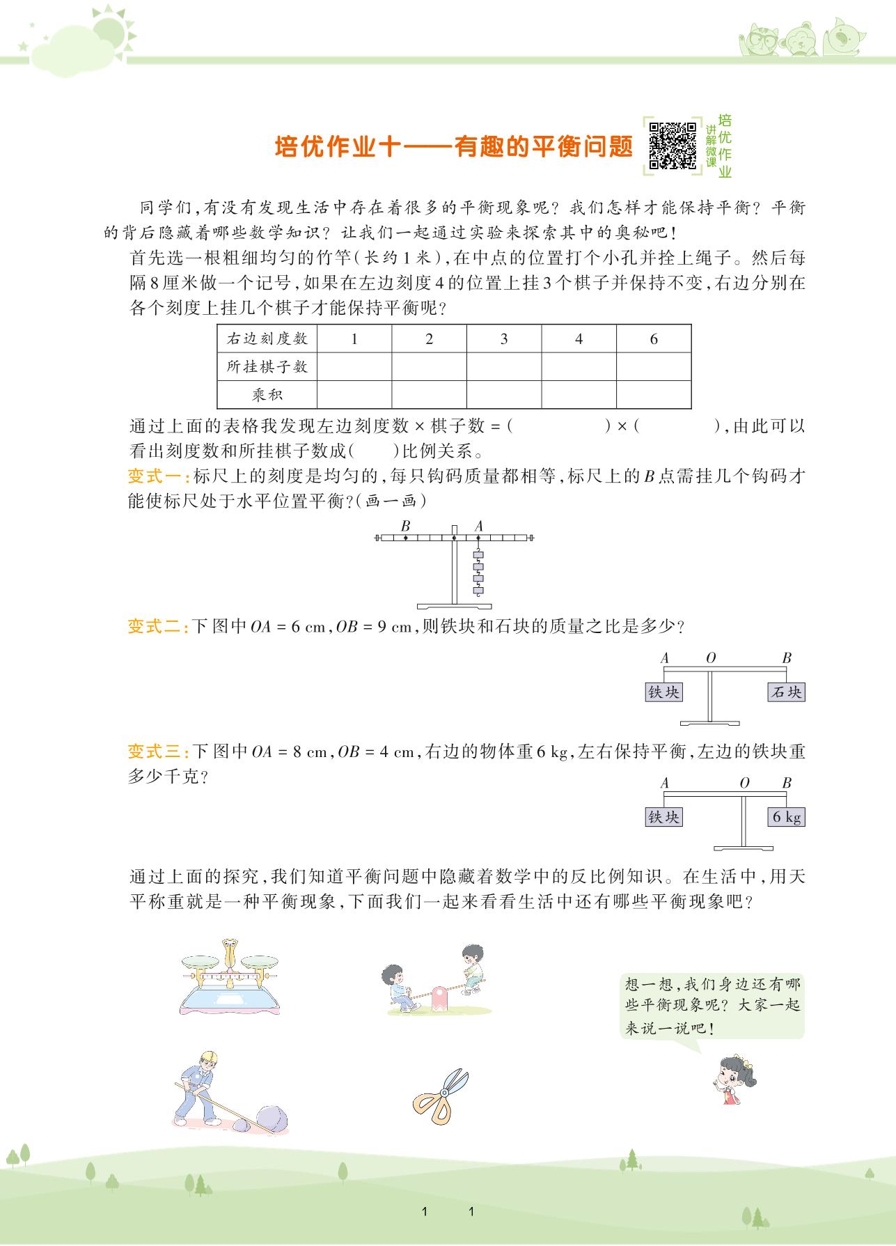 2021下册六年级数学苏教版 第六单元 确定位置——培优作业十 有趣的平衡问题