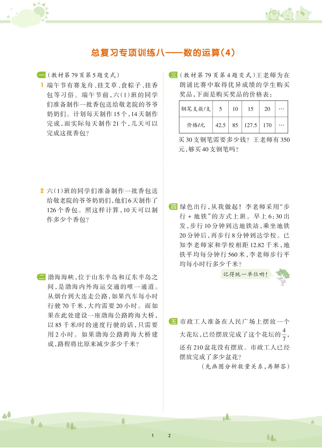 2021下册六年级数学苏教版 第七单元 总复习 数与代数——总复习专项训练八 数的运算(4)