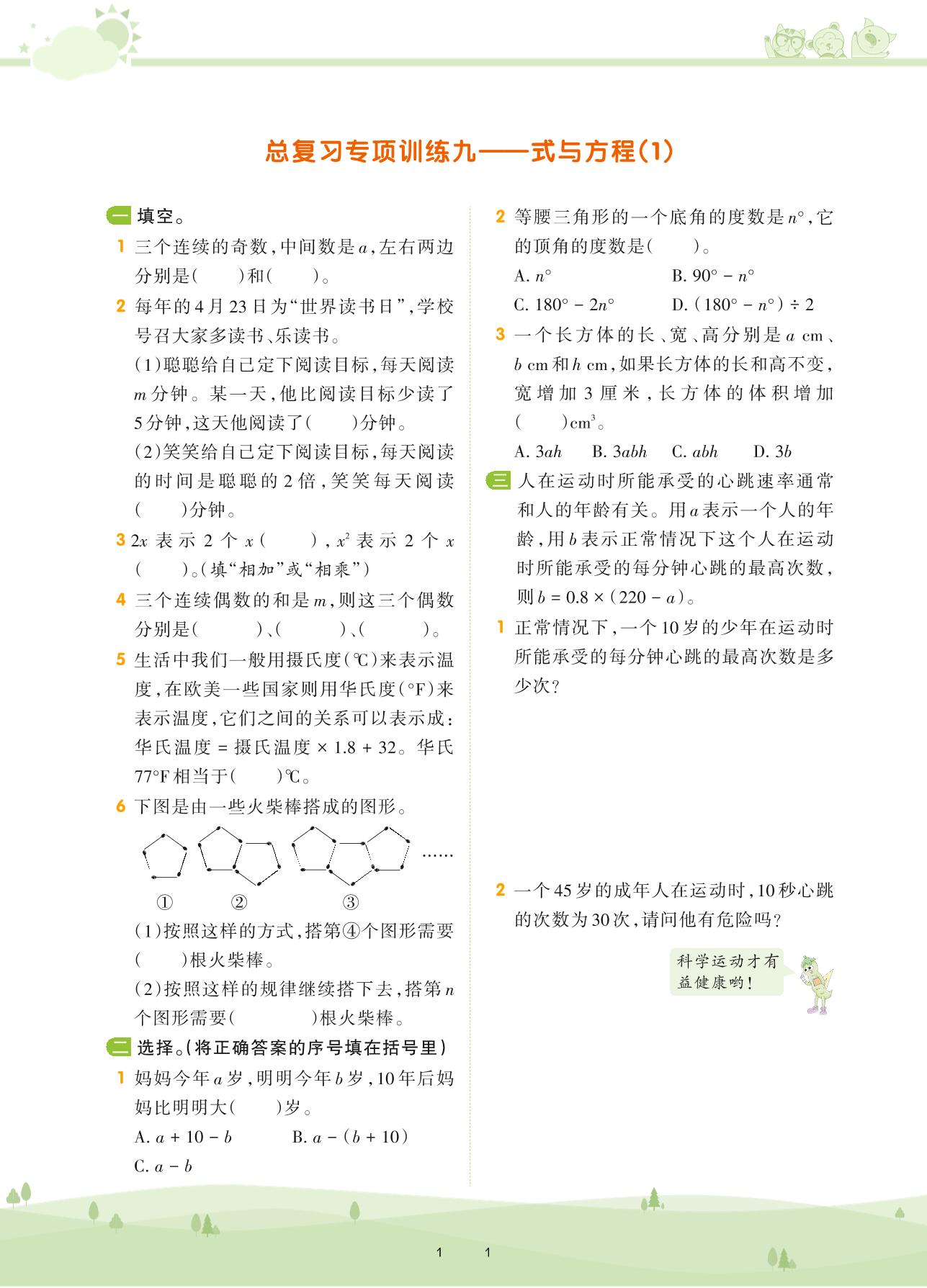 2021下册六年级数学苏教版 第七单元 总复习 数与代数——总复习专项训练九 式与方程(1)