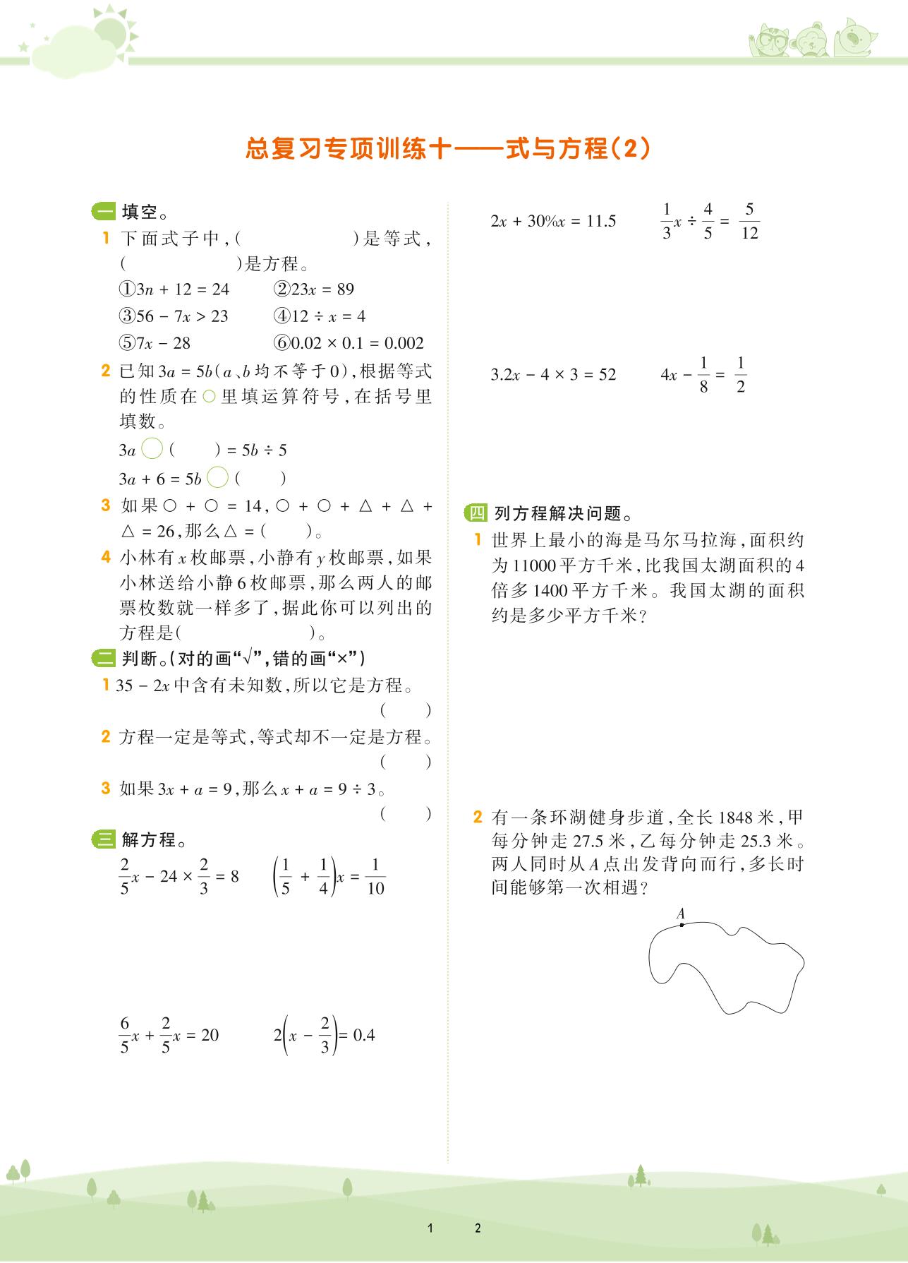 2021下册六年级数学苏教版 第七单元 总复习 数与代数——总复习专项训练十 式与方程(2)