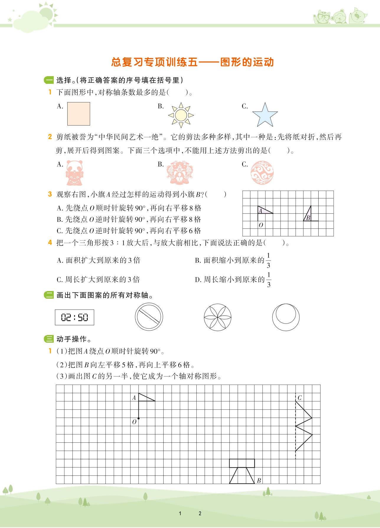 2021下册六年级数学苏教版 第七单元 总复习 图形与几何——总复习专项训练五 图形的运动