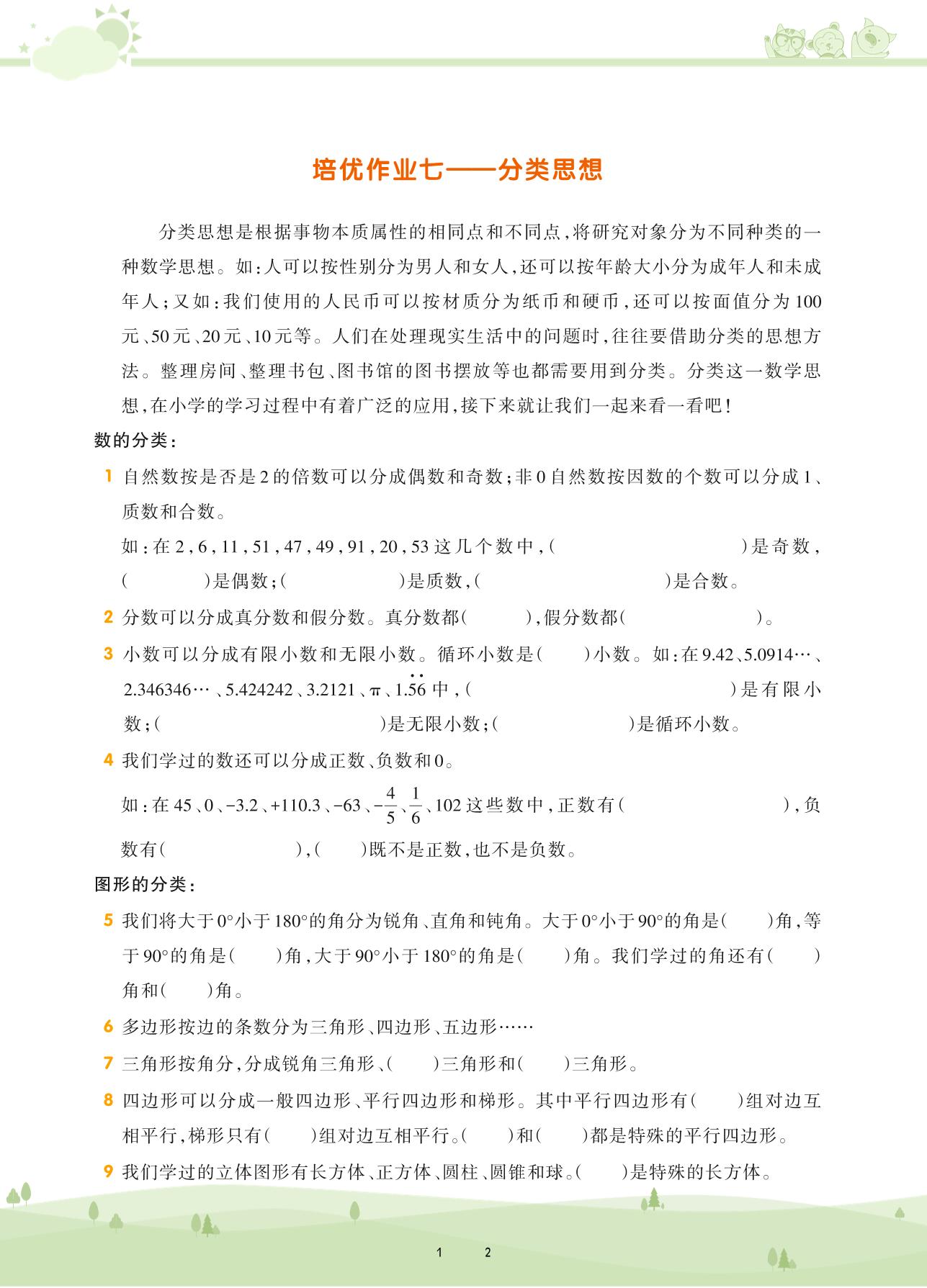 2021下册六年级数学苏教版 第七单元 总复习 统计与可能性——培优作业七 分类思想
