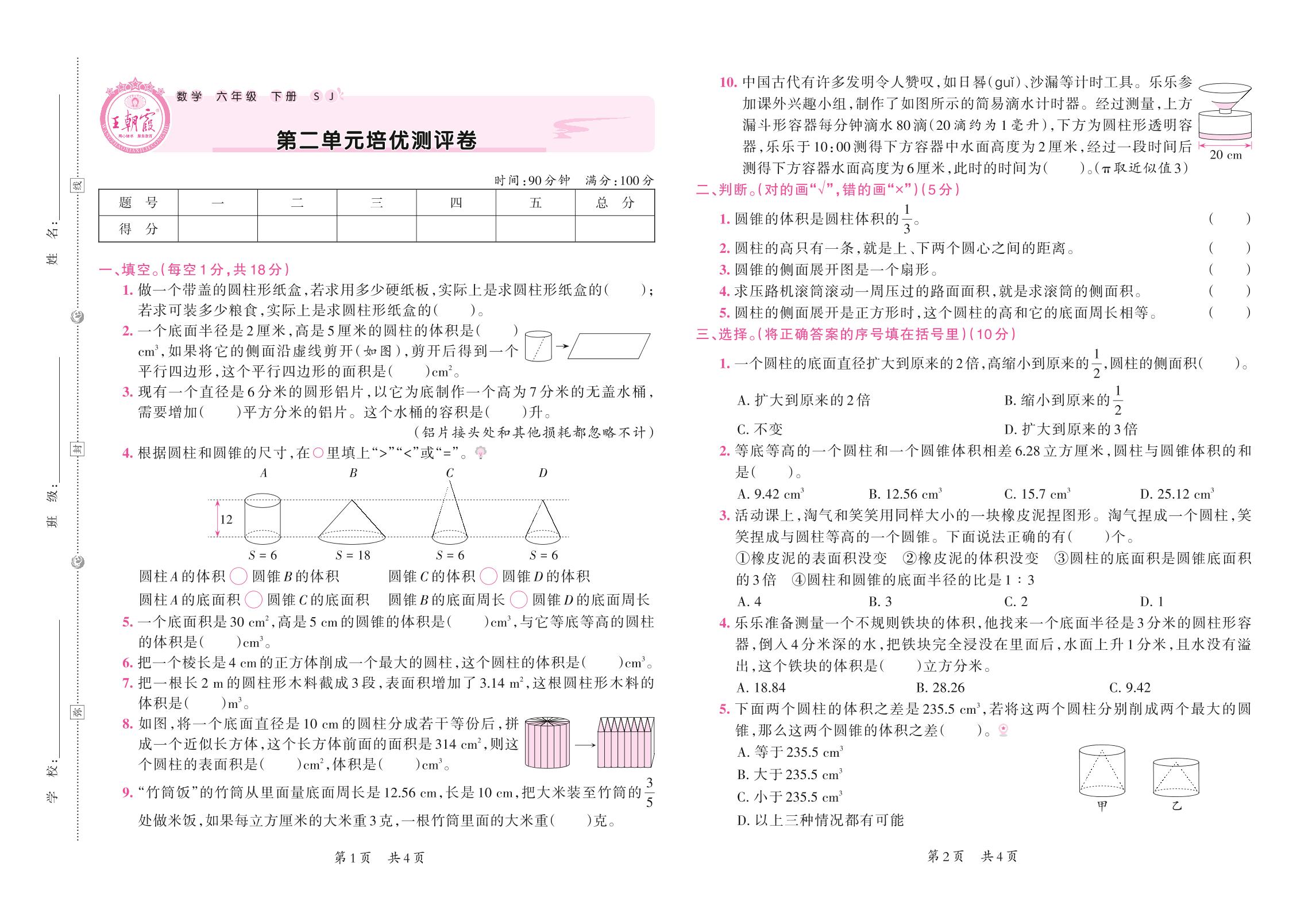 2021下册六年级数学苏教版 第二单元培优测评卷