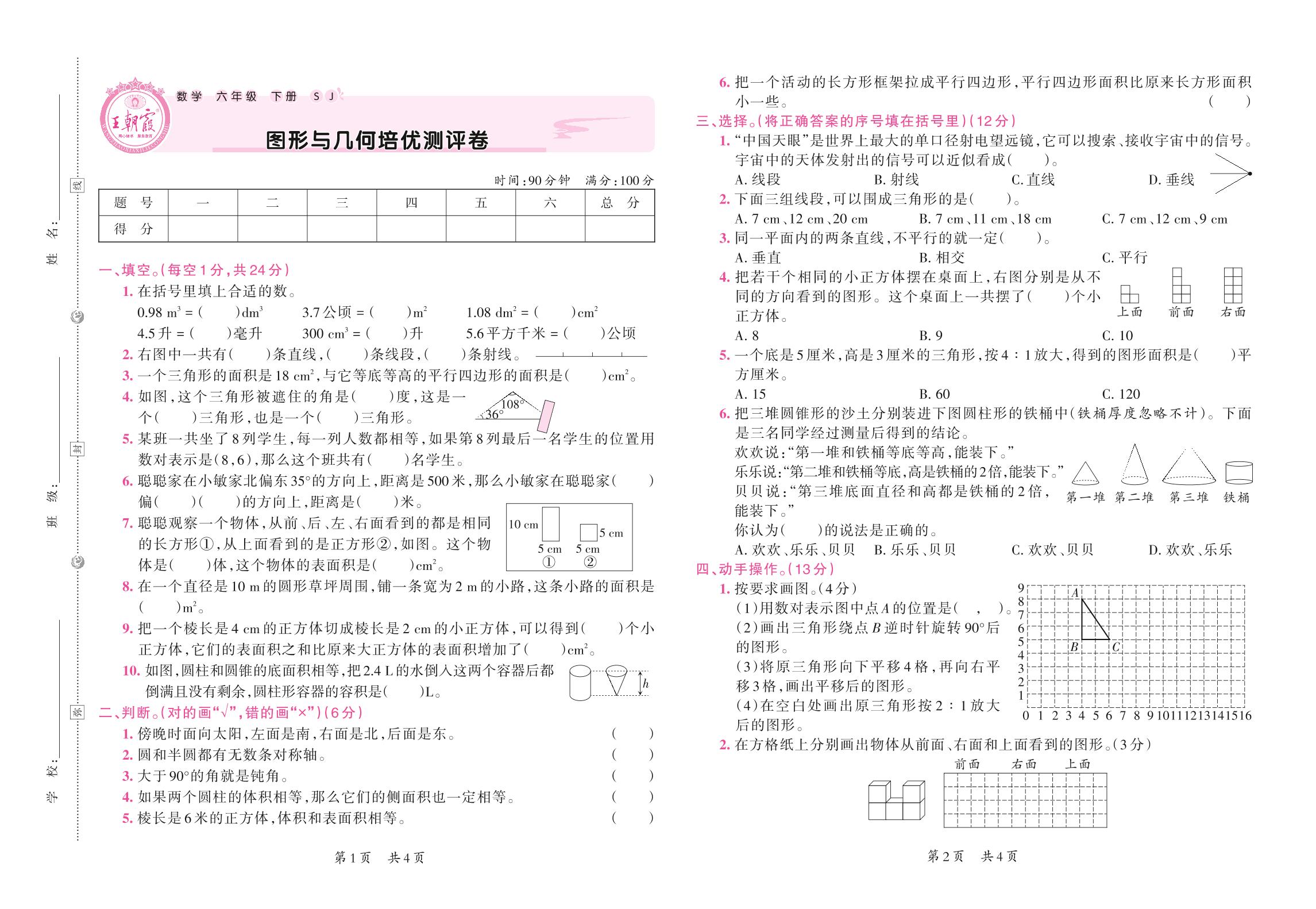 2021下册六年级数学苏教版 图形与几何培优测评卷