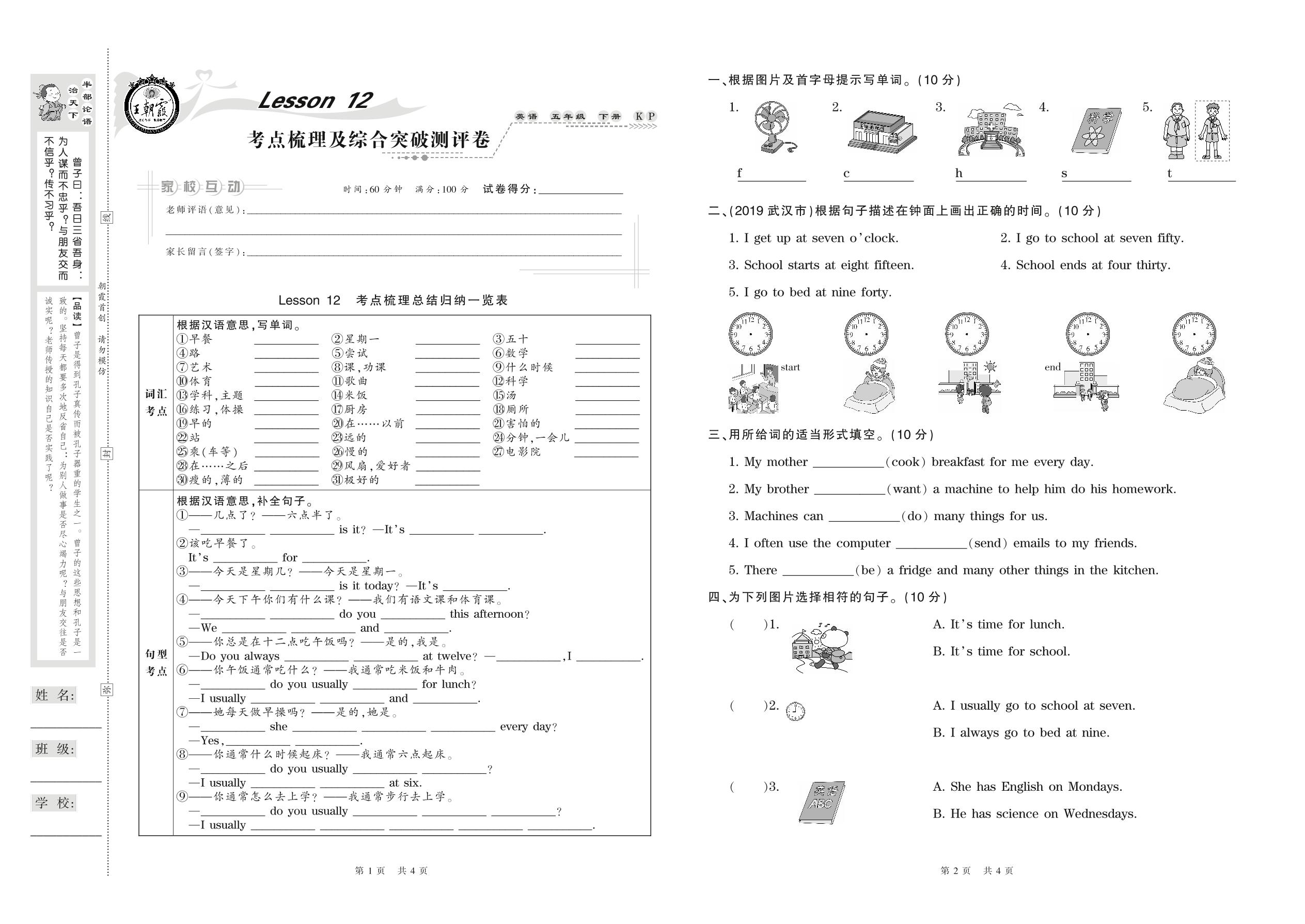2021下册五年级英语科普版 Lesson 12 考点梳理及综合突破测评卷