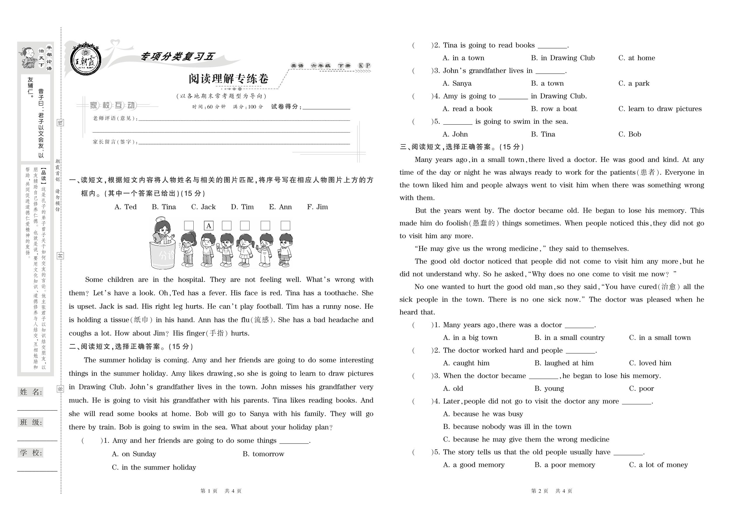 2021下册六年级英语科普版 阅读理解专练卷
