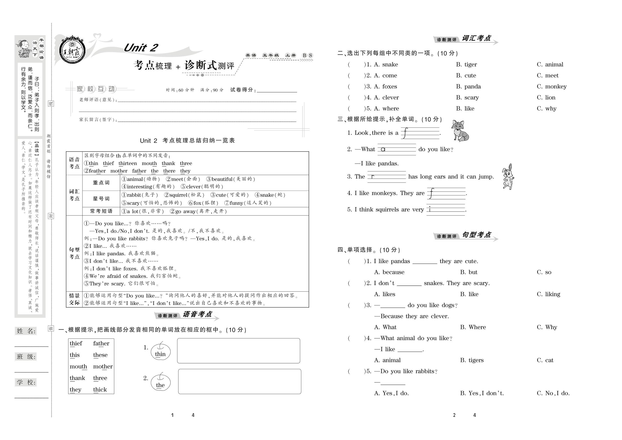2020上册五年级英语北师版 Unit 2 考点梳理+诊断式测评