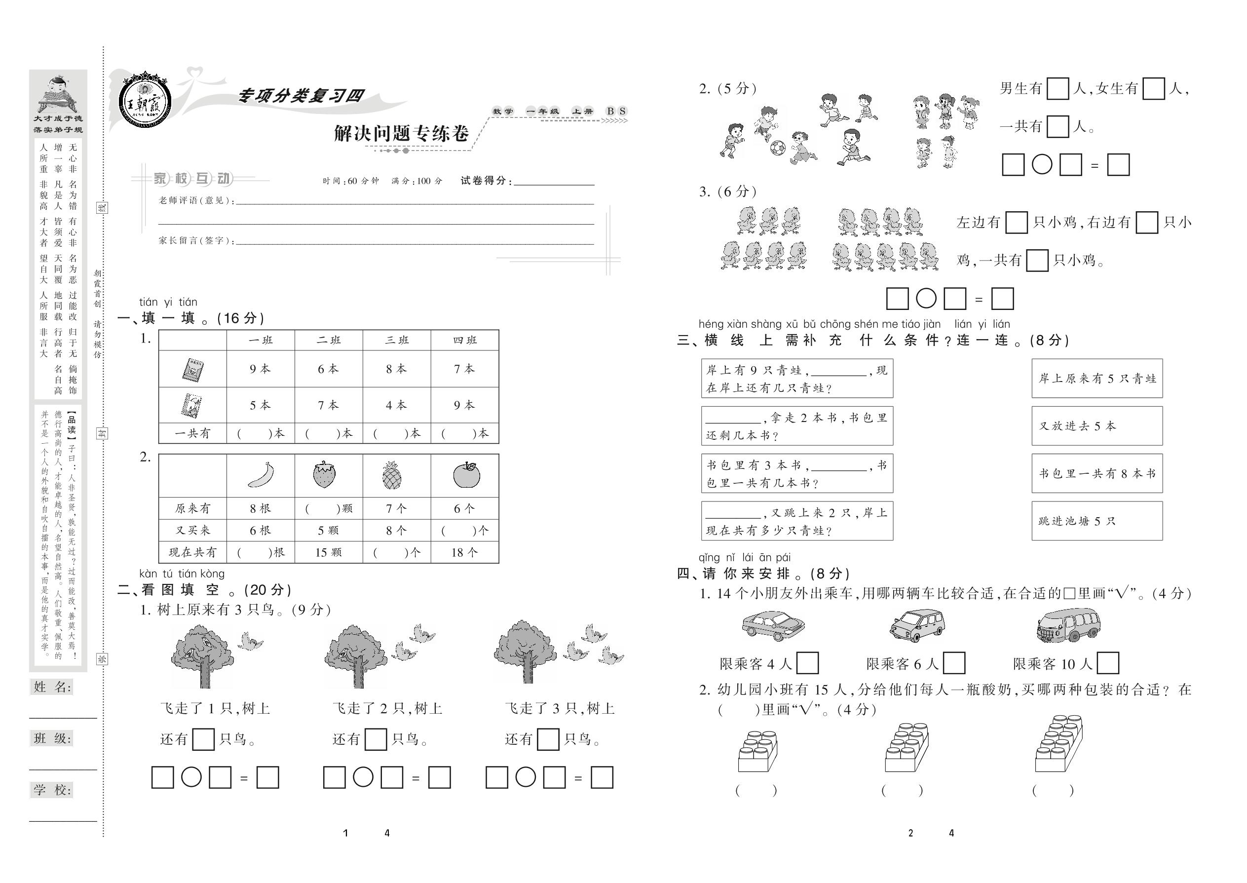 2020上册一年级数学北师版 解决问题专练卷