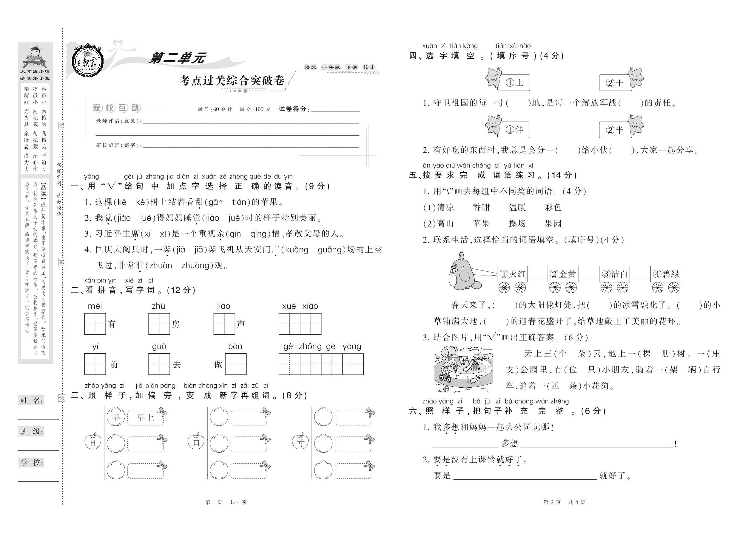 一年级语文人教版下册单元卷