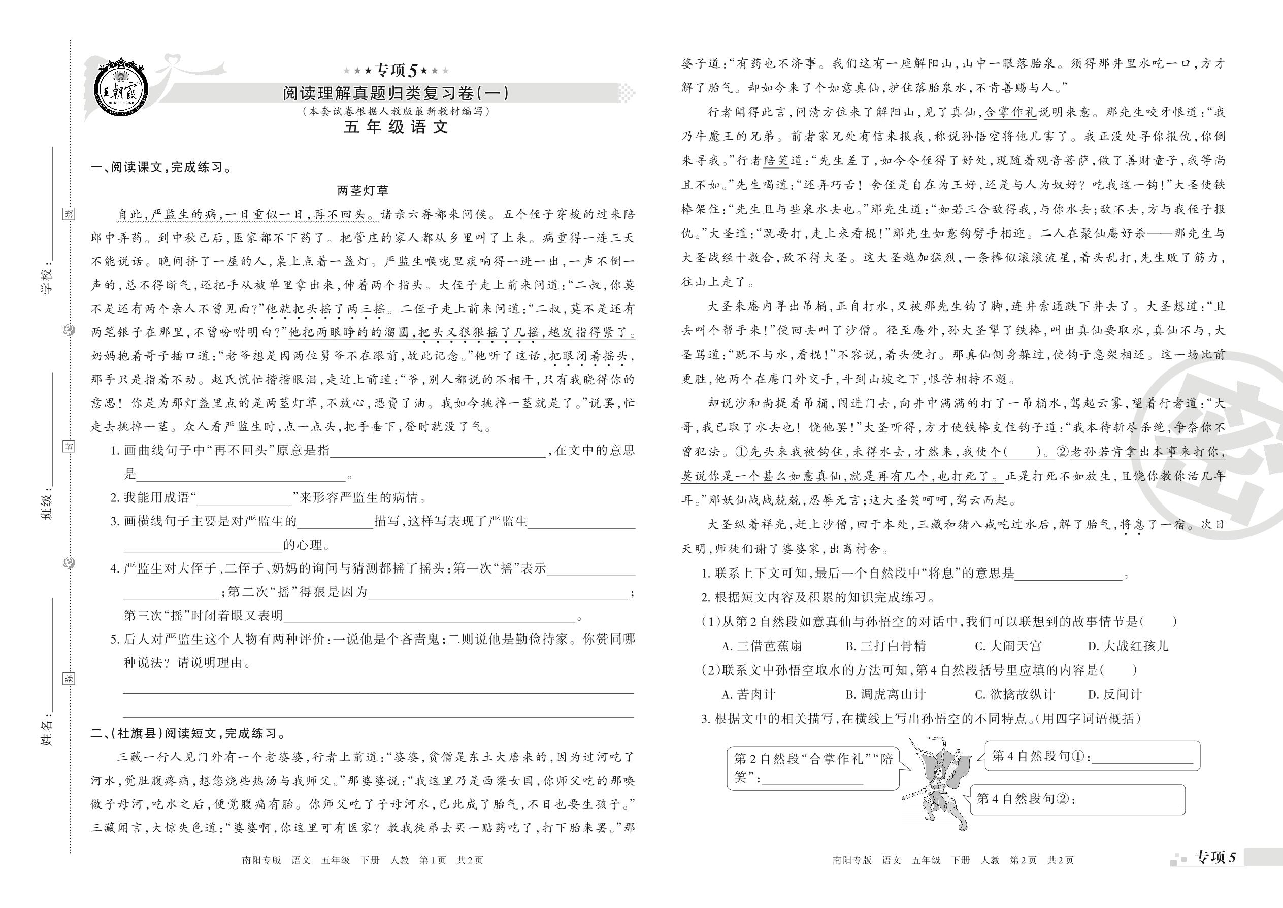 王朝霞期末专项卷——阅读理解一、阅读理解二真题归类复习五年级下册语文(人教版)【0】