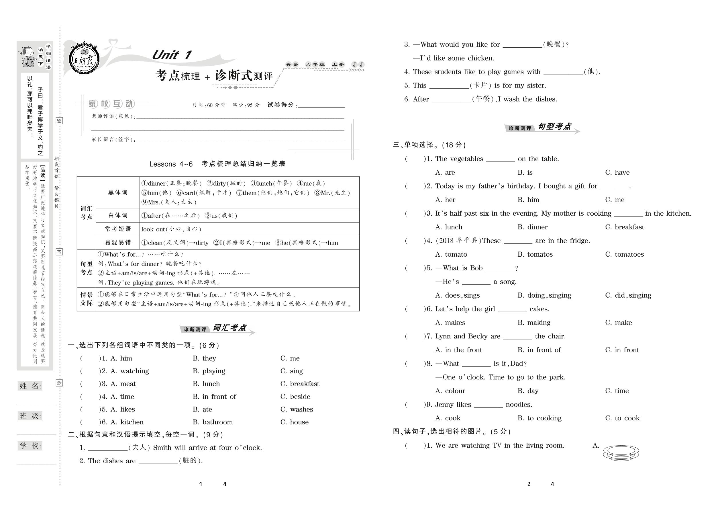 2020上册六年级英语冀教版 Unit 1 考点梳理+诊断式测评 Lessons 4-6