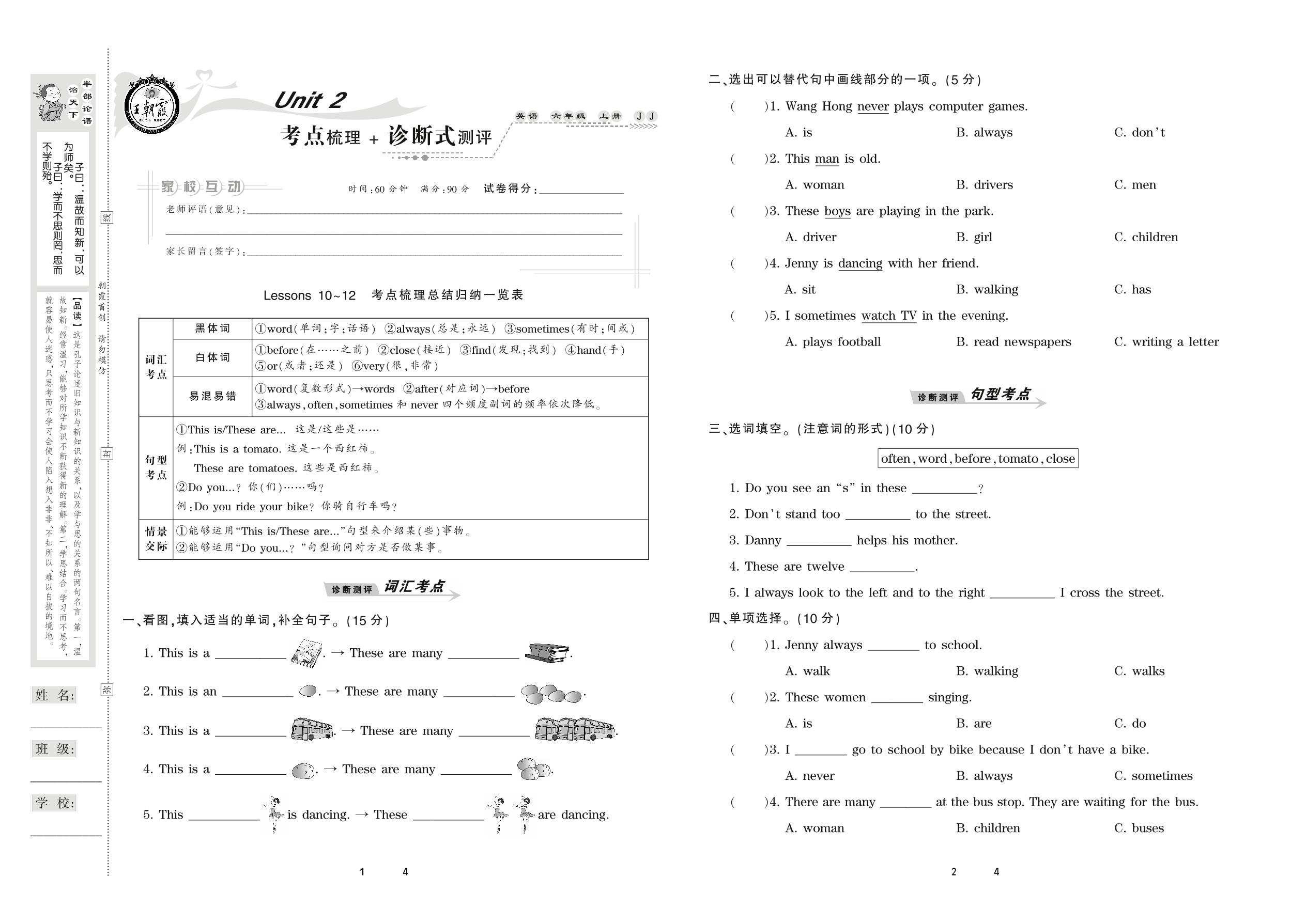 2020上册六年级英语冀教版 Unit 2 考点梳理+诊断式测评 Lessons 10-12