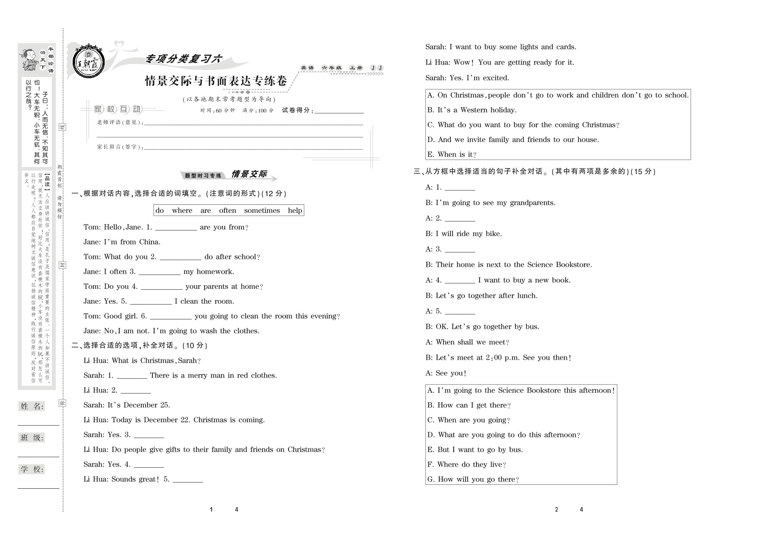 2020上册六年级英语冀教版 情景交际与书面表达专练卷