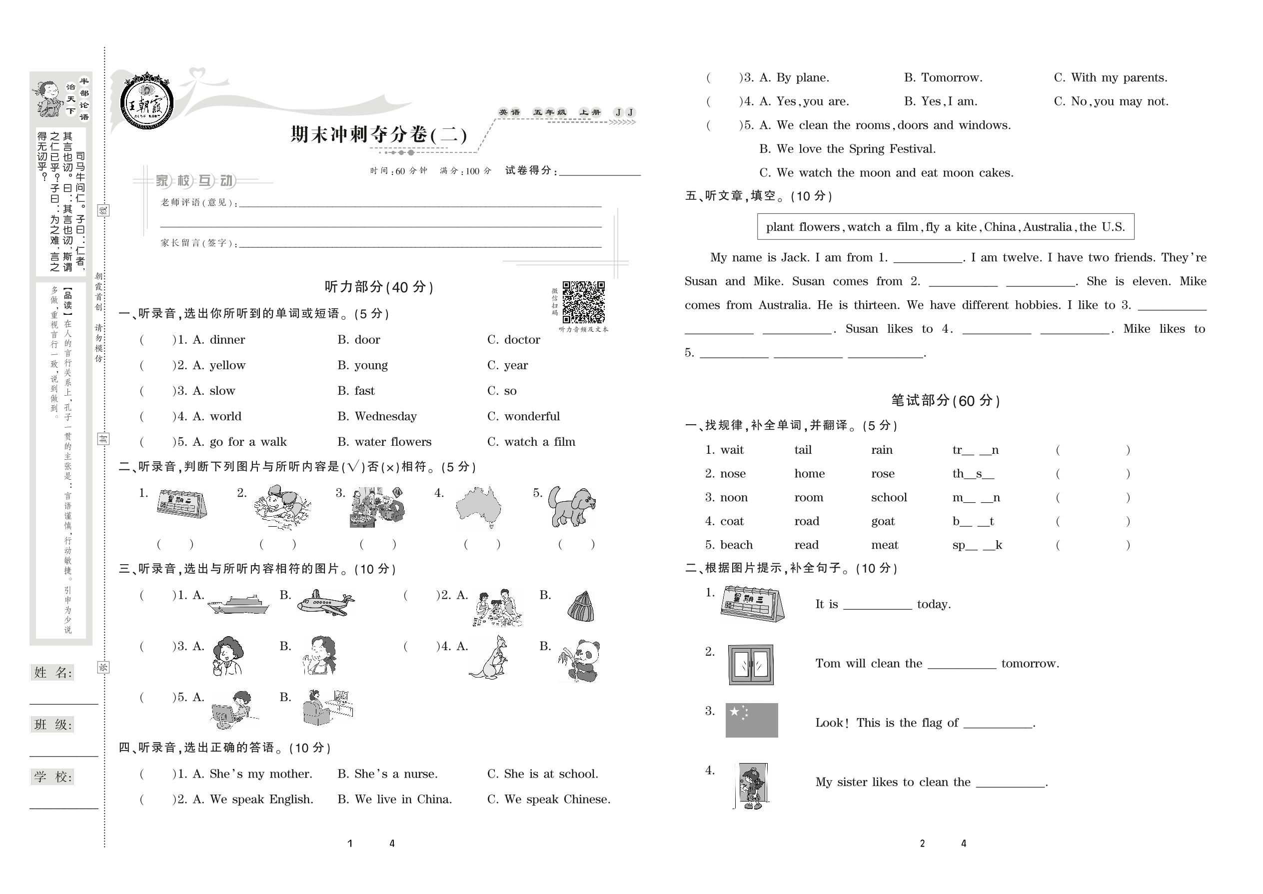2020上册五年级英语冀教版 期末冲刺夺分卷(二)