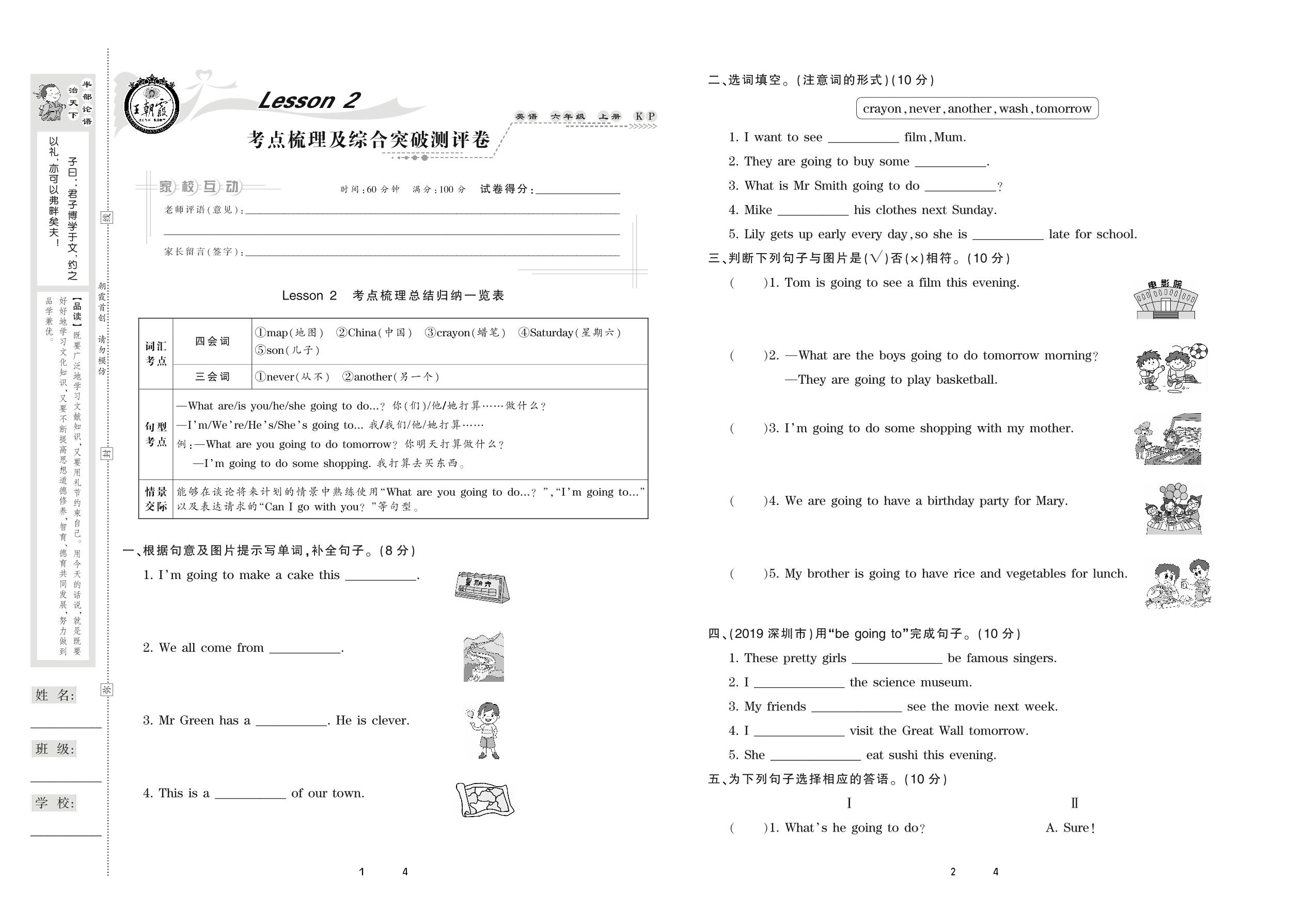 2020上册六年级英语科普版 Lesson 2 考点梳理及综合突破测评卷