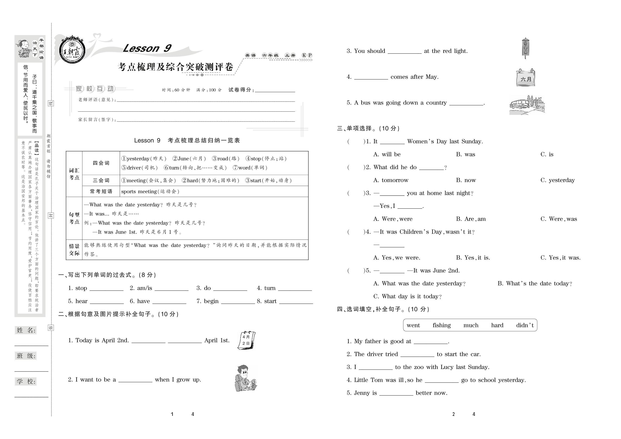 2020上册六年级英语科普版 Lesson 9 考点梳理及综合突破测评卷