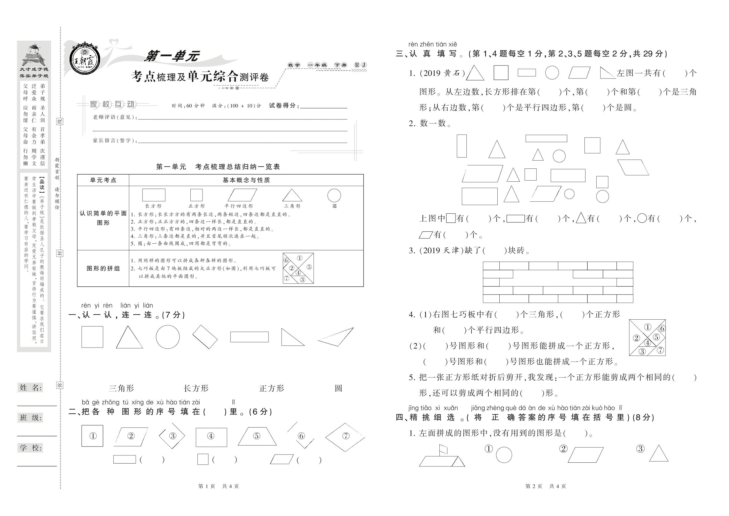 2021下册一年级数学人教版 第一单元 考点梳理及单元综合测评卷_R210924152555763